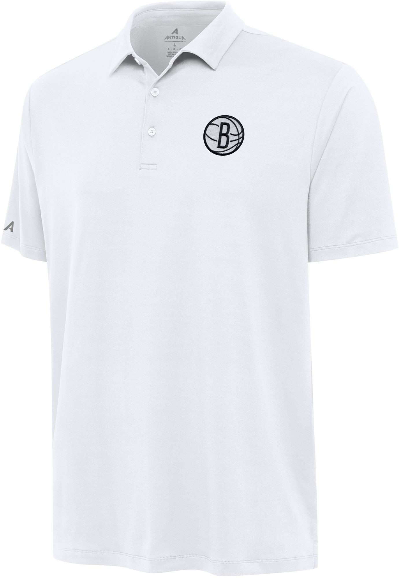 Antigua Men's Brooklyn Nets White Reprocess Polo