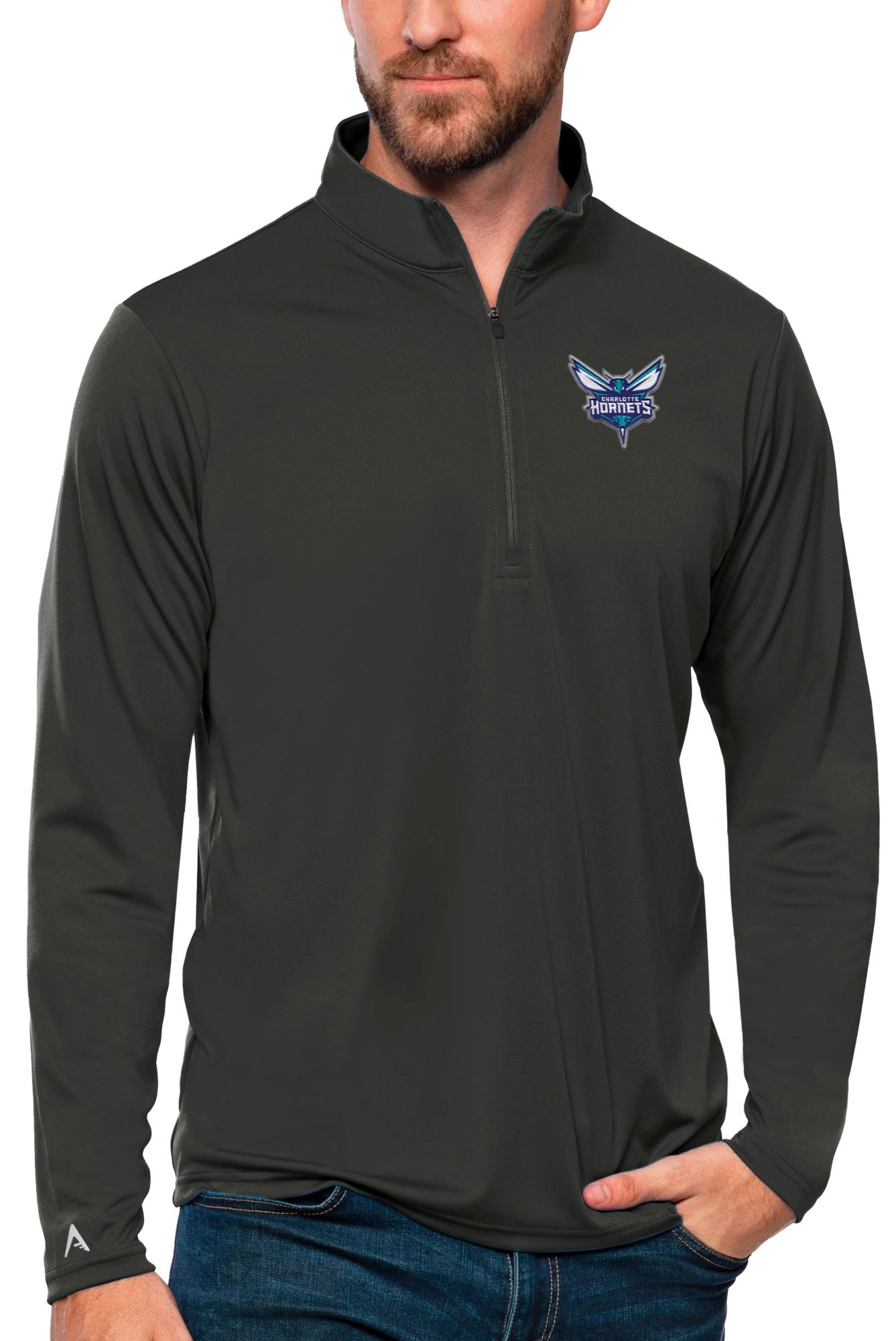 Antigua Men's Charlotte Hornets Tribute Grey Pullover Sweater