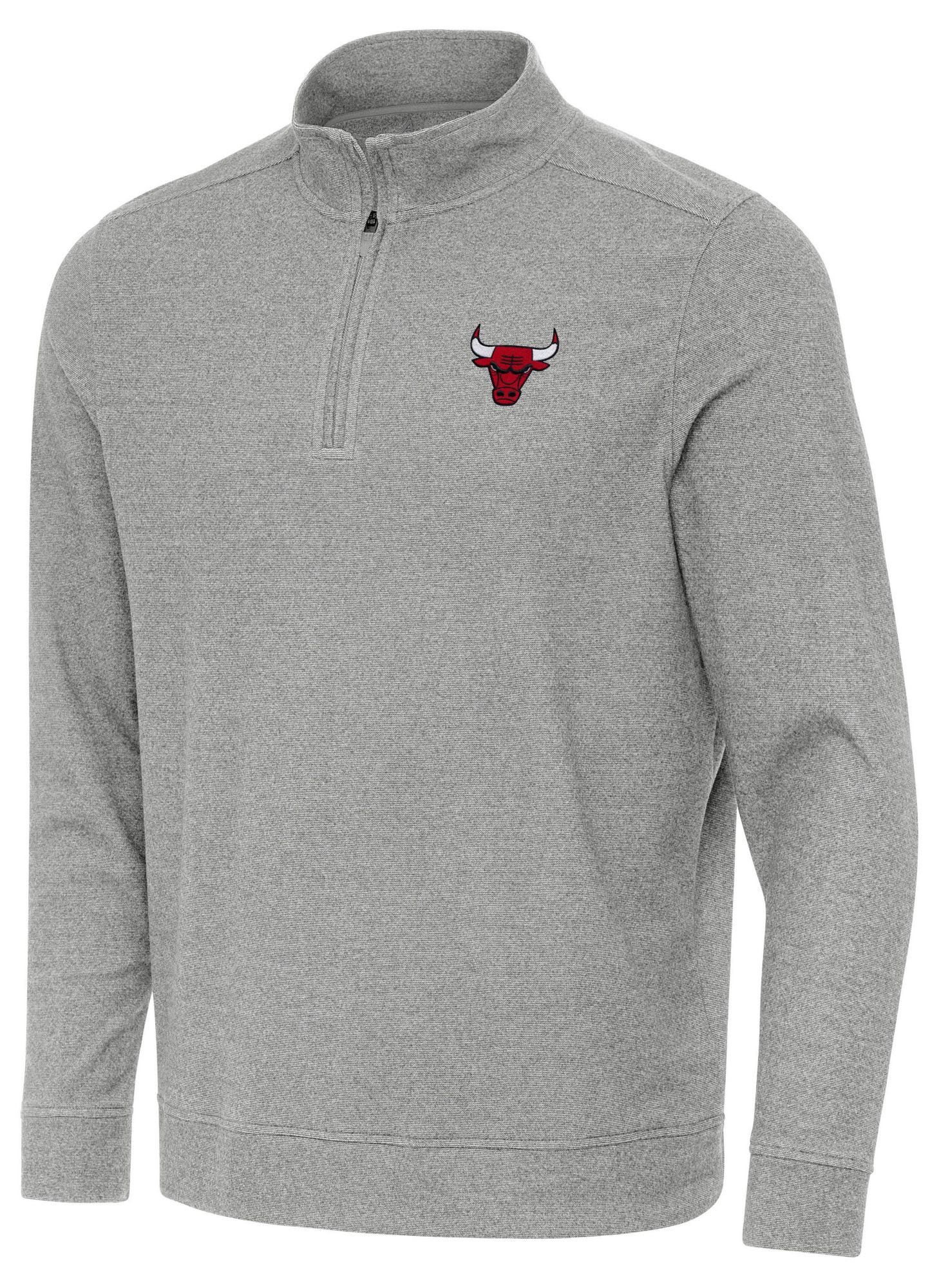 Antigua Men's Chicago Bulls Grey Subtle Quarter-Zip Pullover
