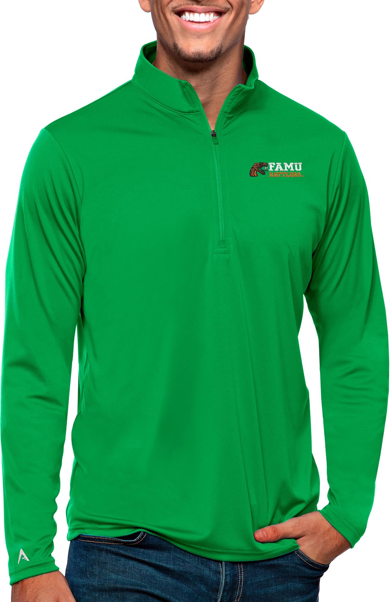 Antigua Men's Florida A&M Rattlers Green Tribute 1/4 Zip Jacket