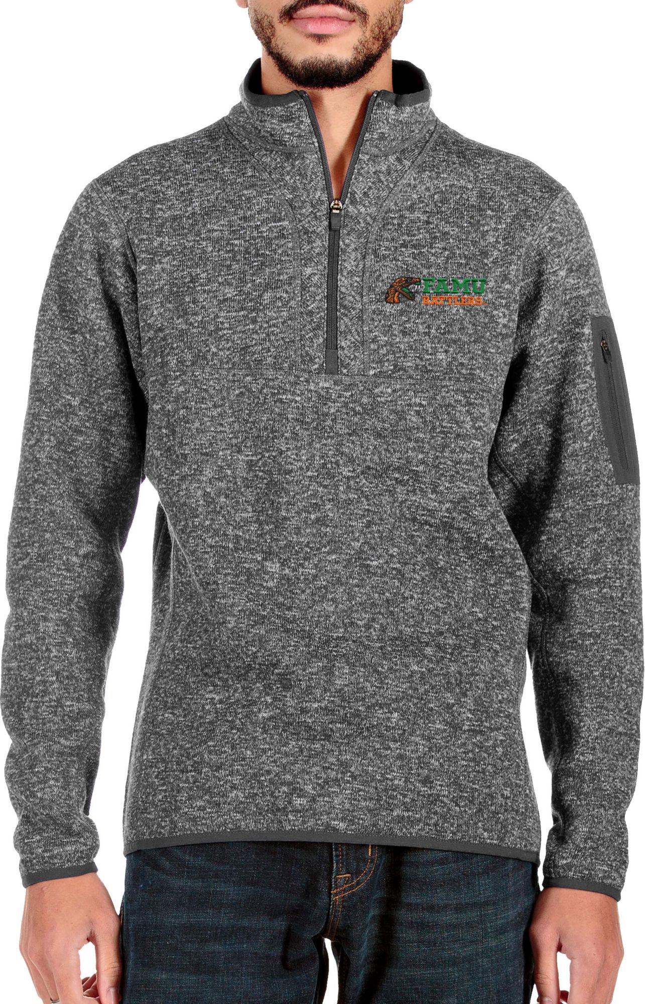 Antigua Men's Florida A&M Rattlers Grey Fortune Quarter-Zip Pullover Shirt