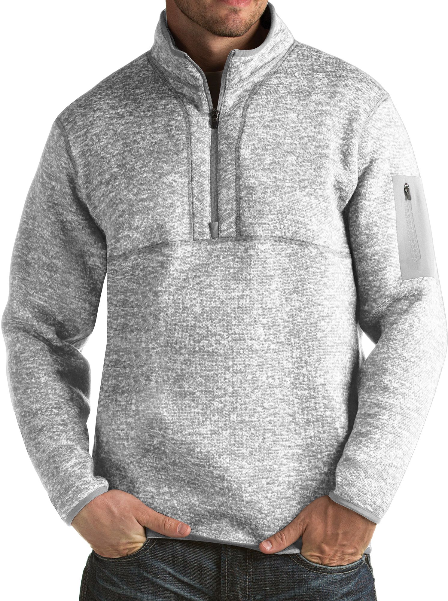 For the ultimate in warmth and performance, add the Antigua Fortune Pullover to your closet. Constructed with brushed back heather sweater knit fabric, the Fortune ensures you stay warm and comfortable in colder conditions. The dyed to match coverstitch and binding at the collar, cuffs and bottom hem add a sharp look, while the welded sleeve pocket provides secure storage space.
