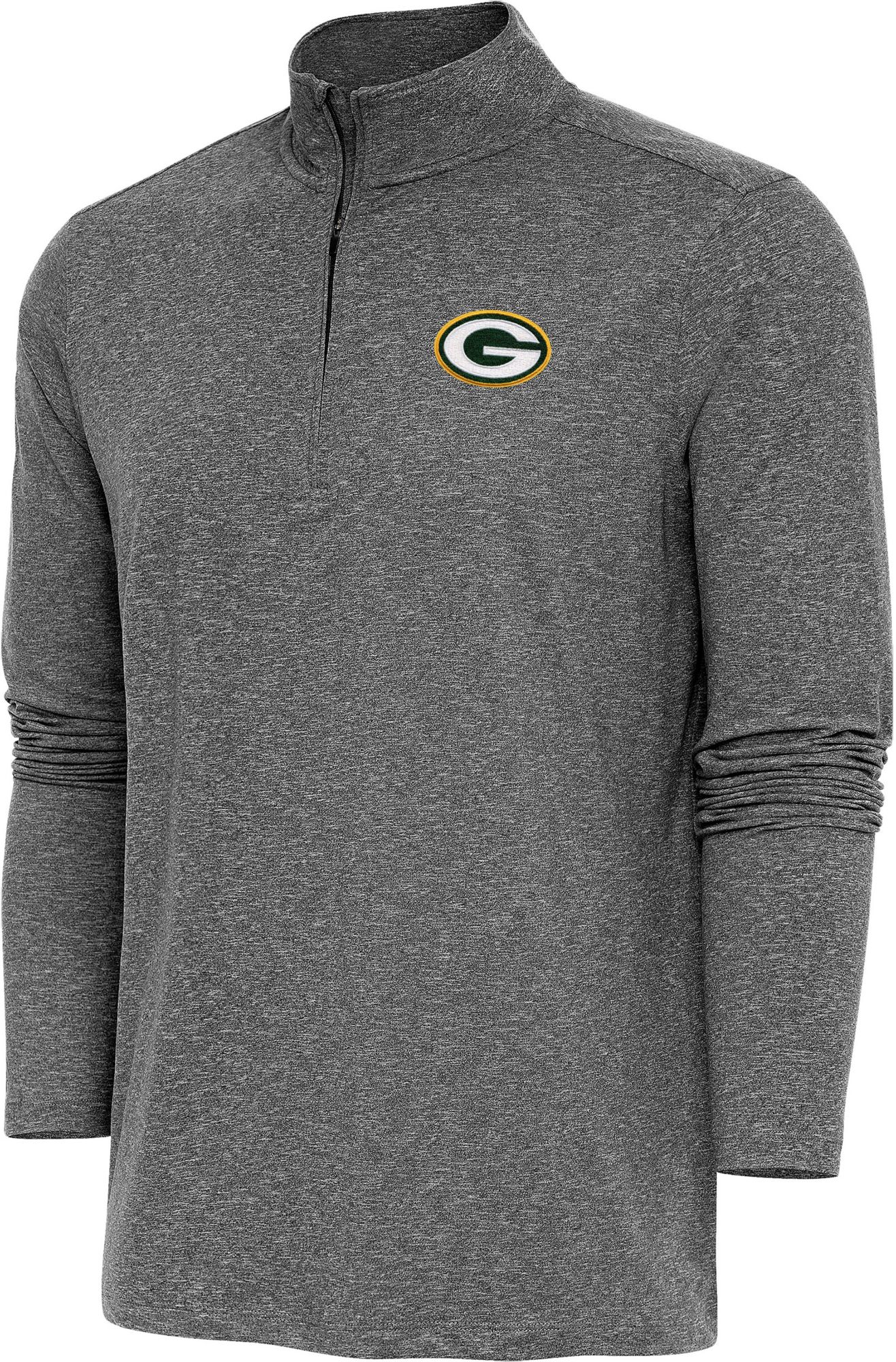 Antigua Men's Green Bay Packers Hunk Black Heather 1/4-Zip Pullover