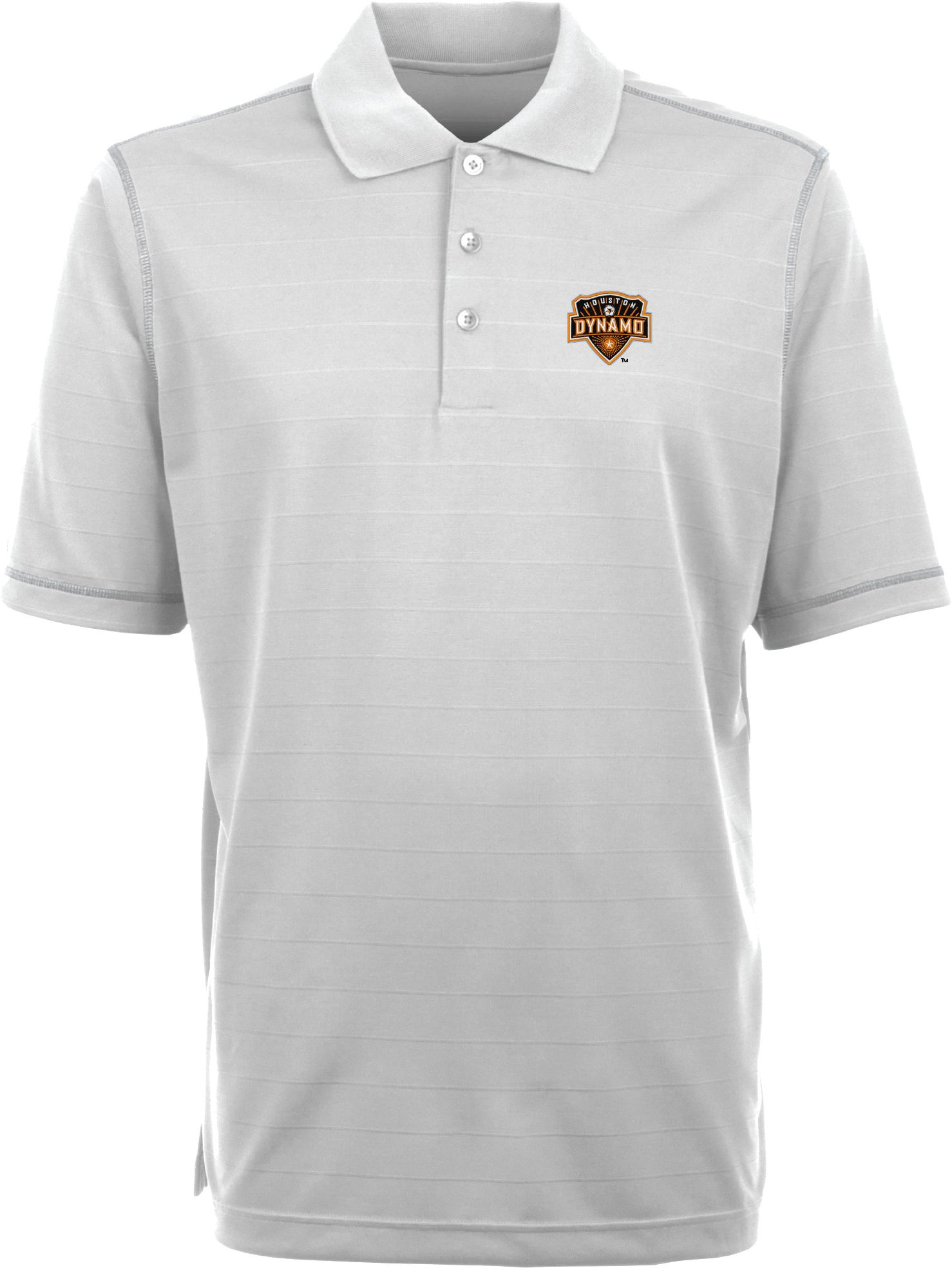 Your flair for fashion and Dynamo pride is easily recognized in an Antigua® Men’s Houston Dynamo Icon Polo. A Dynamo crest is embroidered on the left chest to make your supporter status known. It has stylish sublimated horizontal striping and contrast color stitching. The Dynamo polo has a classic look with a 3-button placket and flat knit collar. Desert Dry® moisture-wicking fabric works to keep you dry and comfortable.