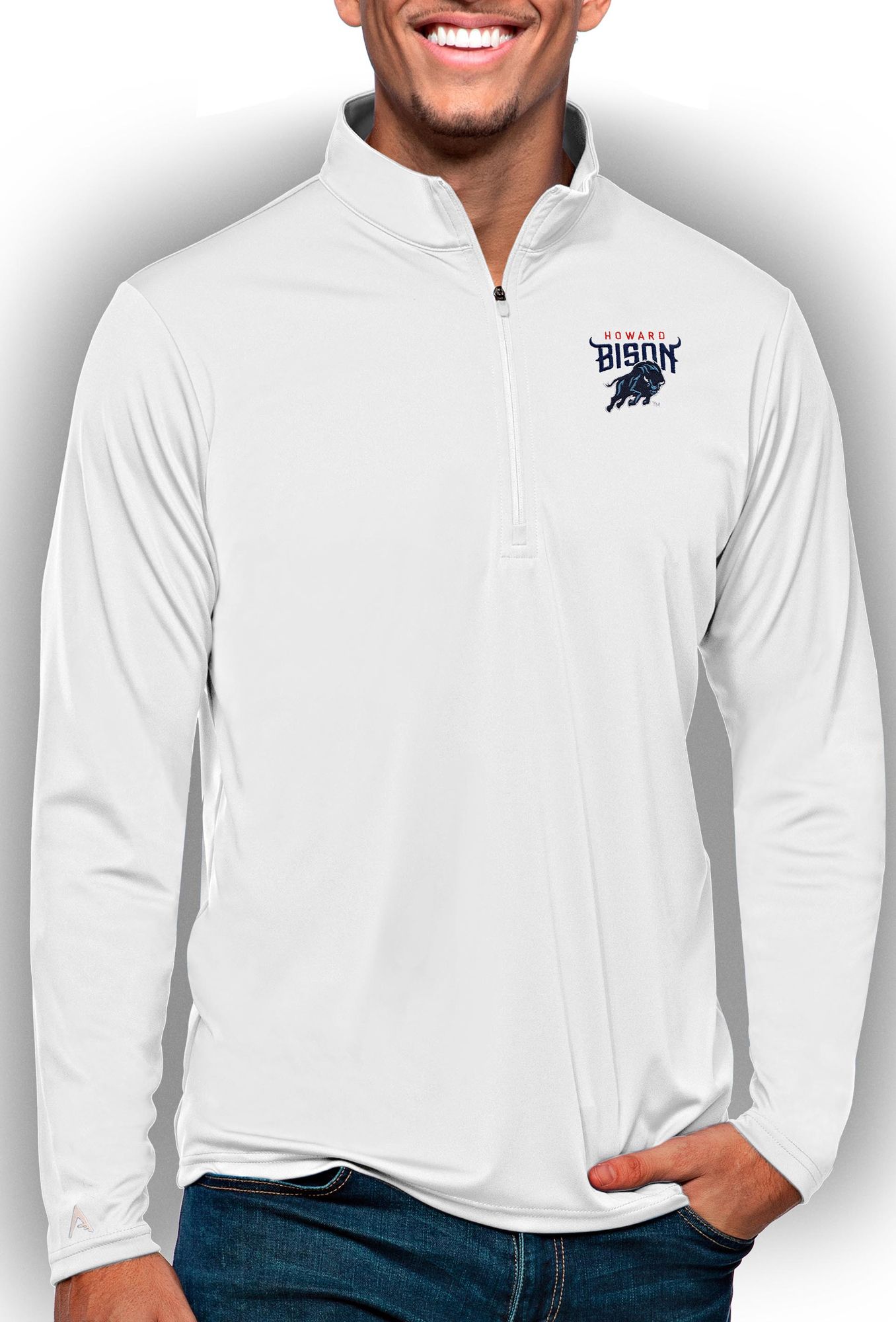 Antigua Men's Howard Bison White Tribute 1/4 Zip Pullover