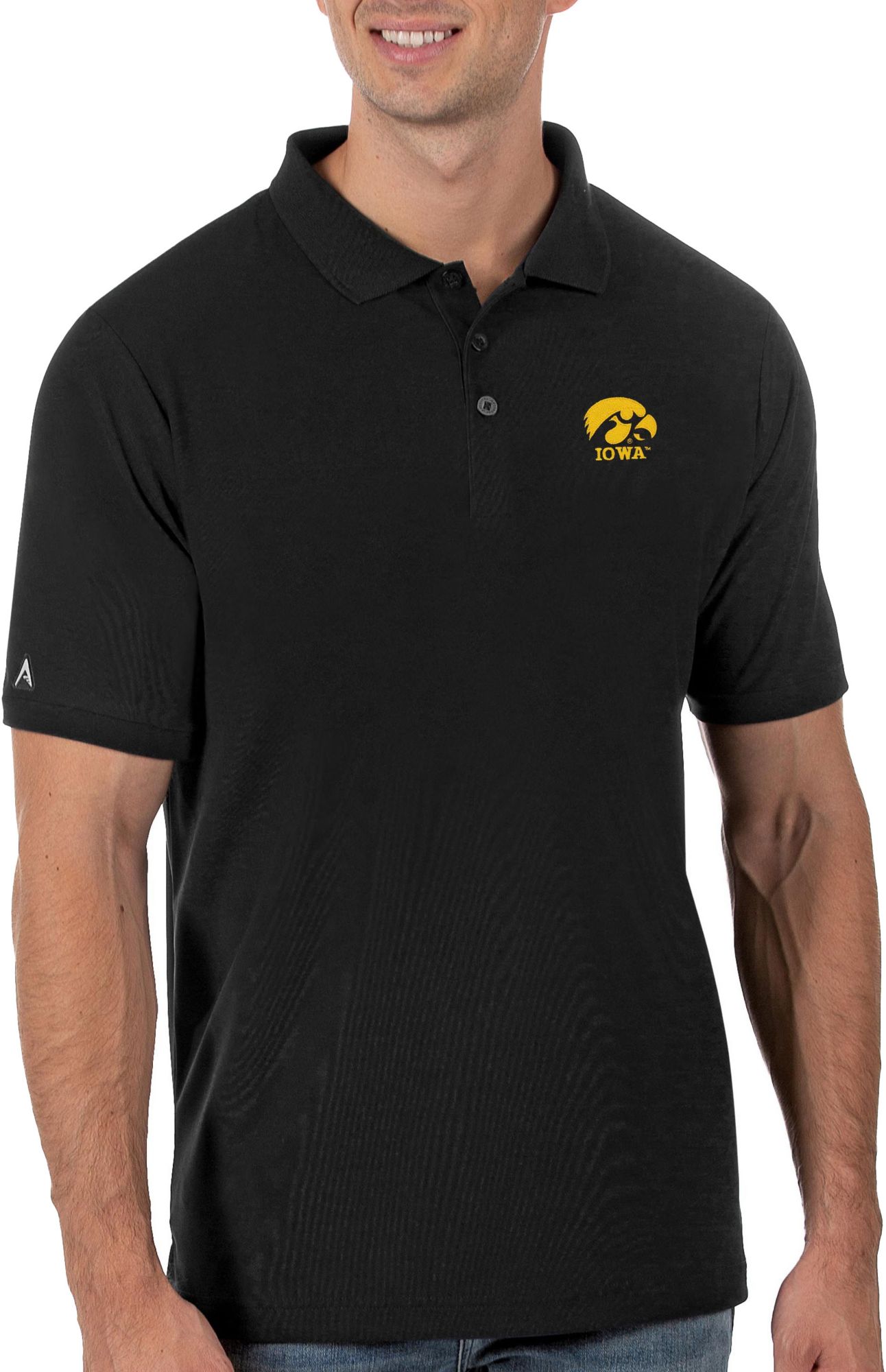 Antigua Men's Iowa Hawkeyes Black Legacy Pique Polo