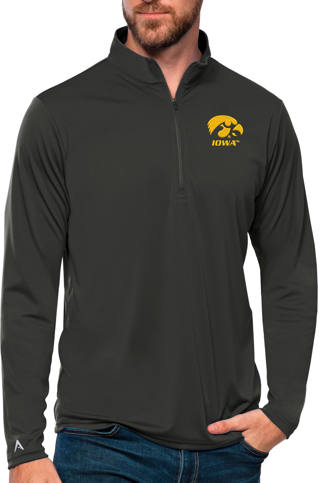 Antigua Men's Iowa Hawkeyes Smoke Tribute 1/4 Zip Jacket