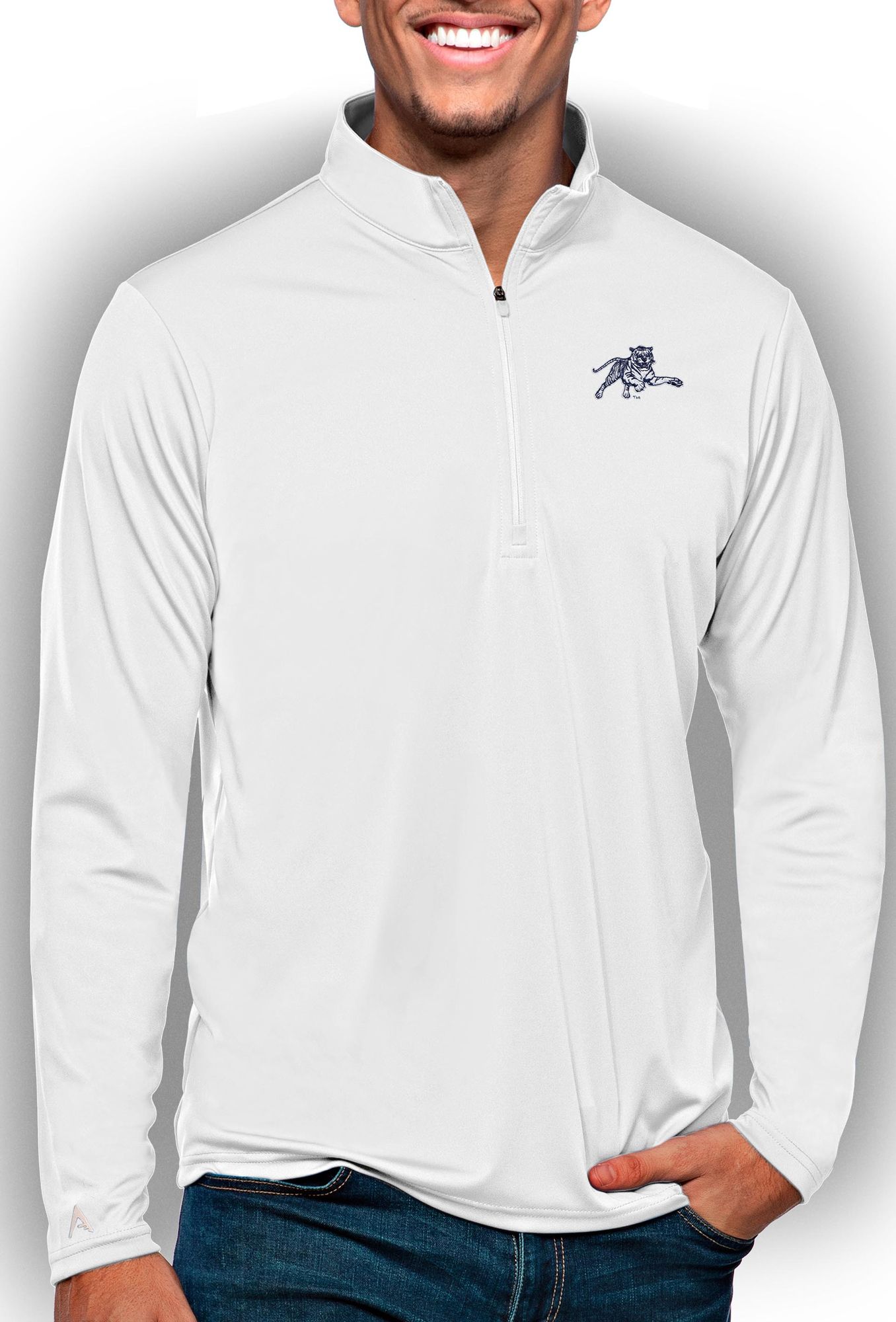 Antigua Men's Jackson State Tigers White Tribute 1/4 Zip Jacket