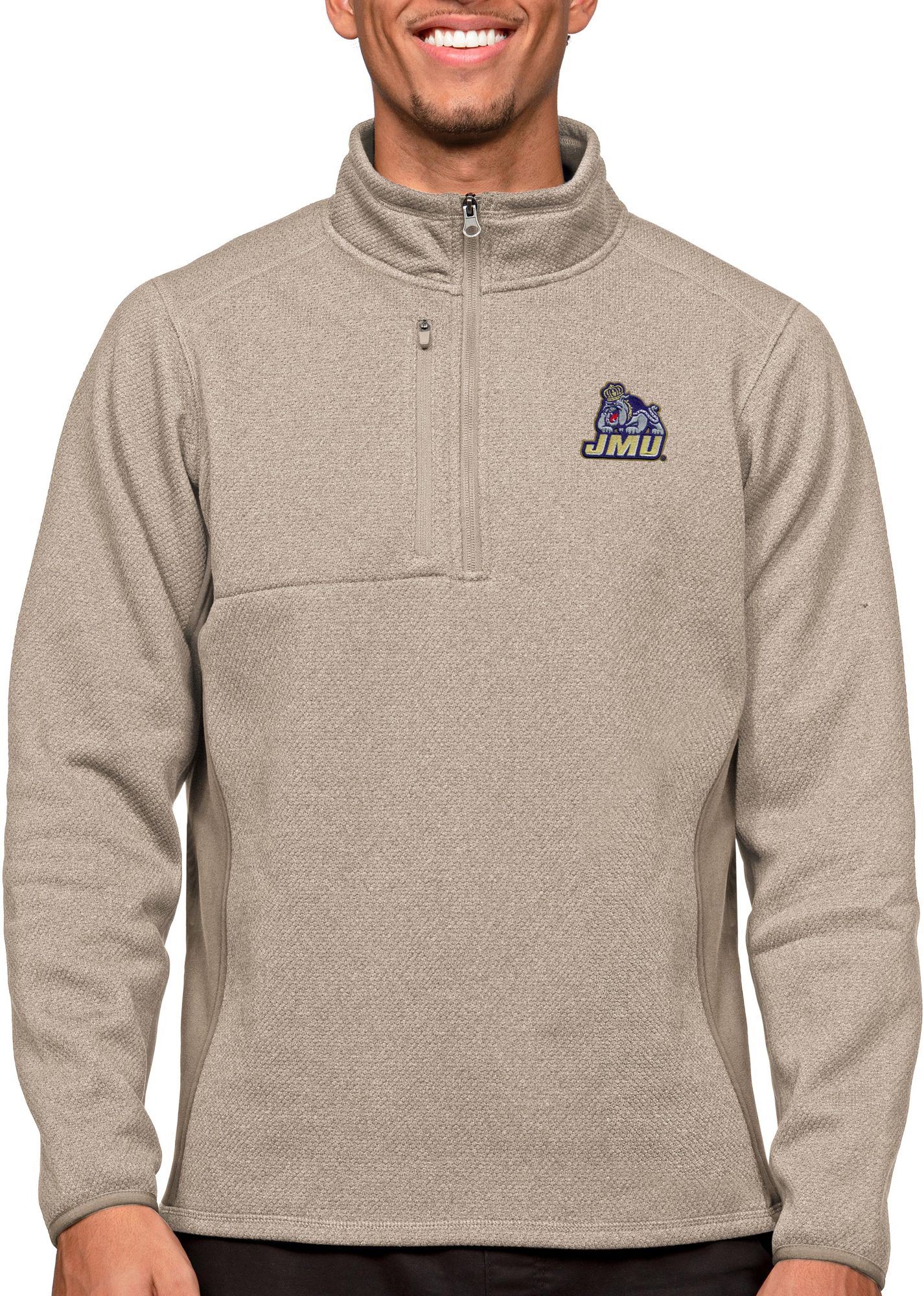 Antigua Men's James Madison Dukes Oatmeal Course 1/4 Zip Jacket