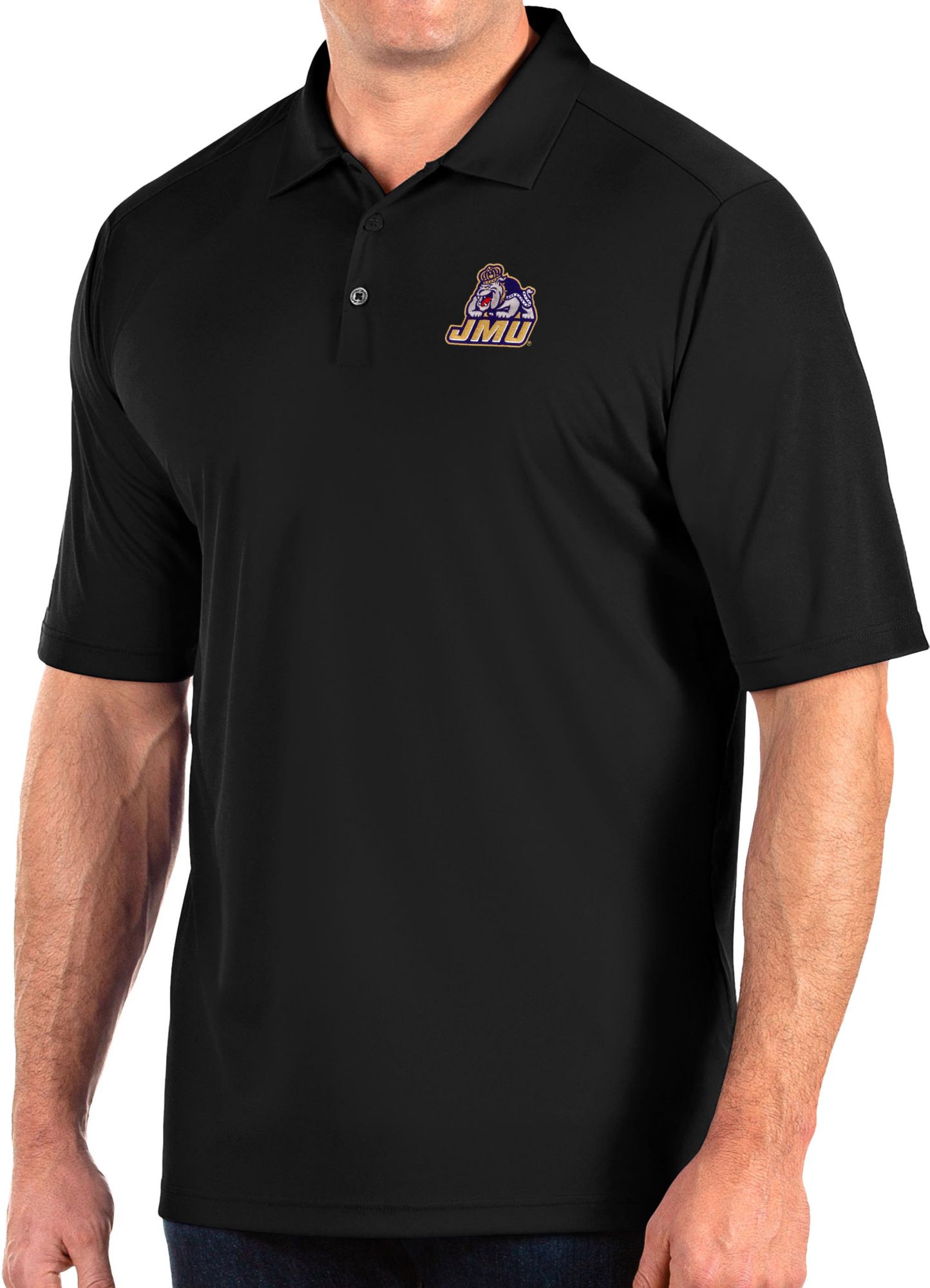 Antigua Men's James Madison Dukes Tribute Performance Black Polo
