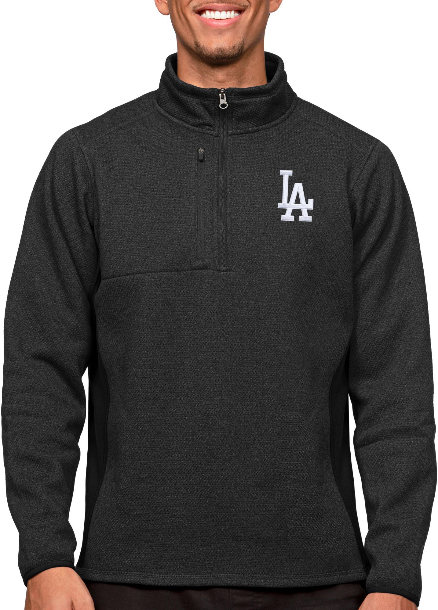 Antigua Men's Los Angeles Dodgers Black 1/4 Zip Course Pullover