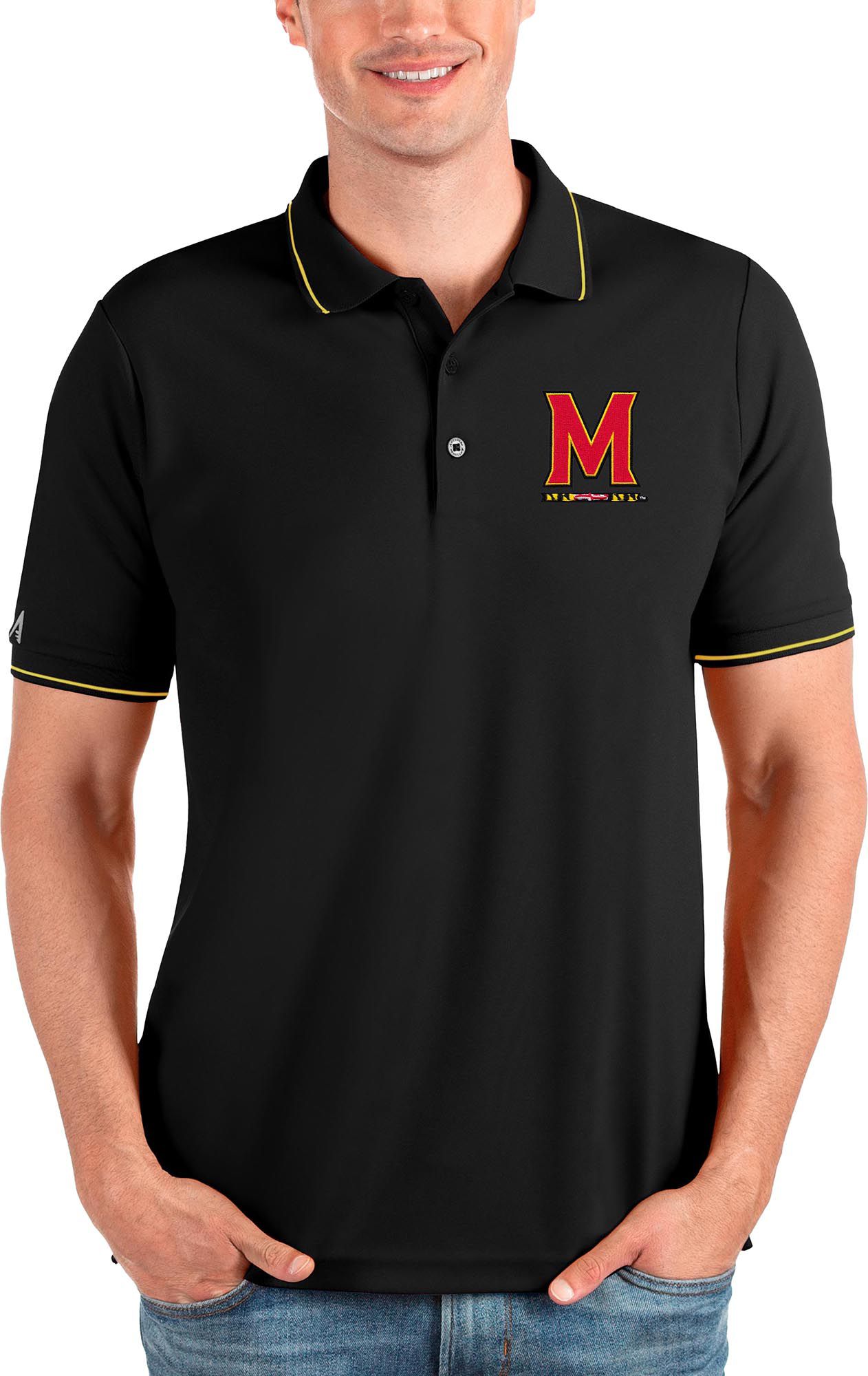 Antigua Men's Maryland Terrapins Black and Gold Affluent Polo