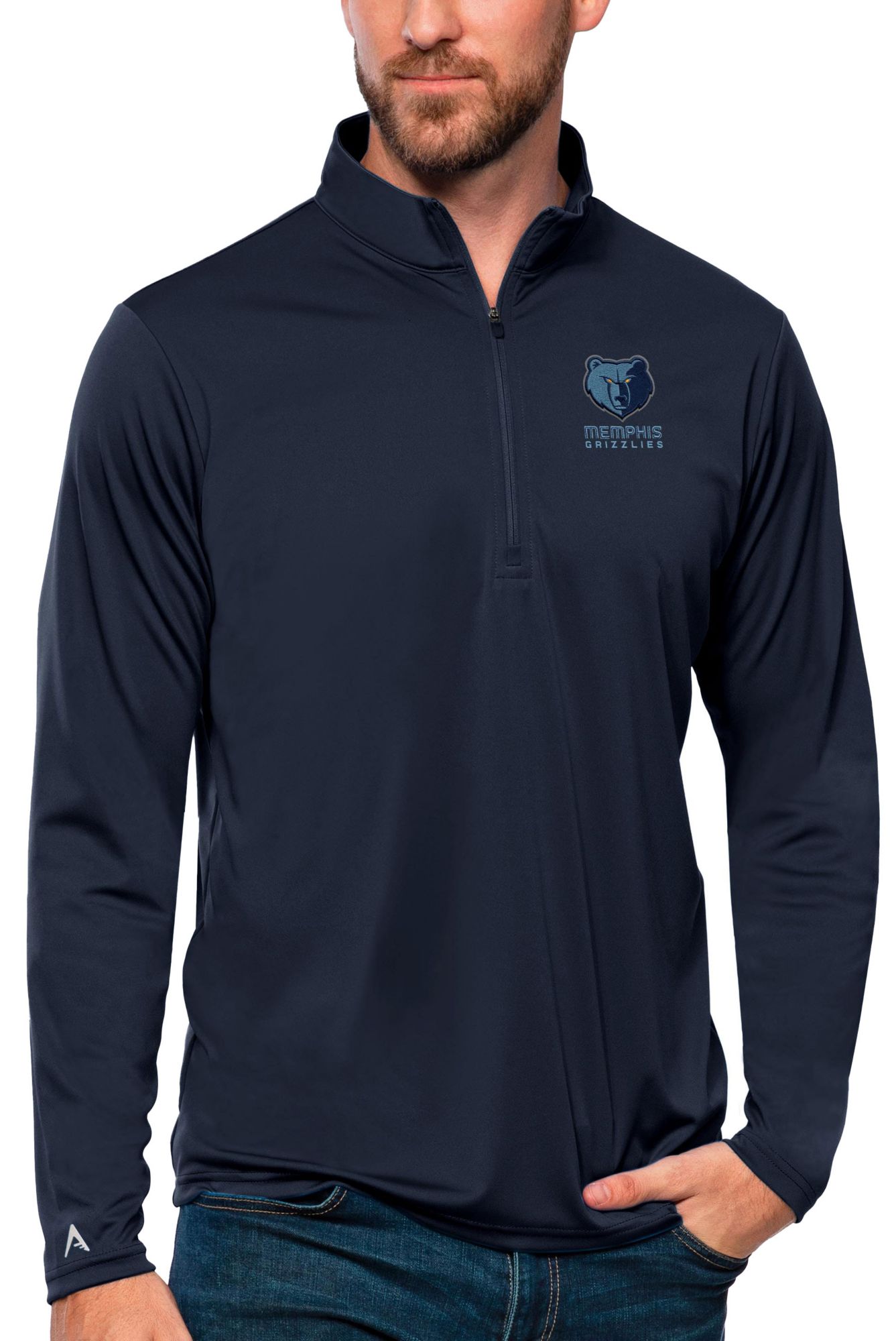 Antigua Men's Memphis Grizzlies Tribute Navy Pullover Sweater