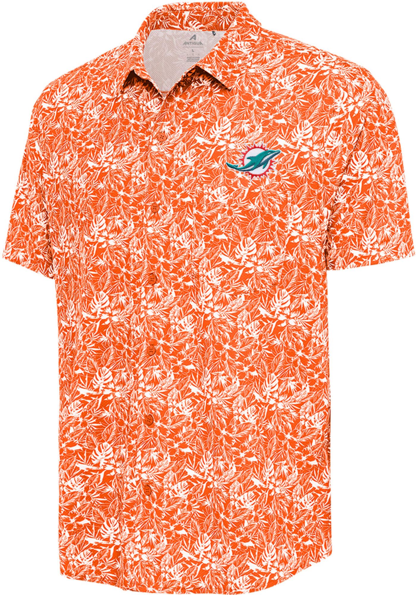 Antigua Men's Miami Dolphins Orange Resort Button Down Short Sleeve Shirt