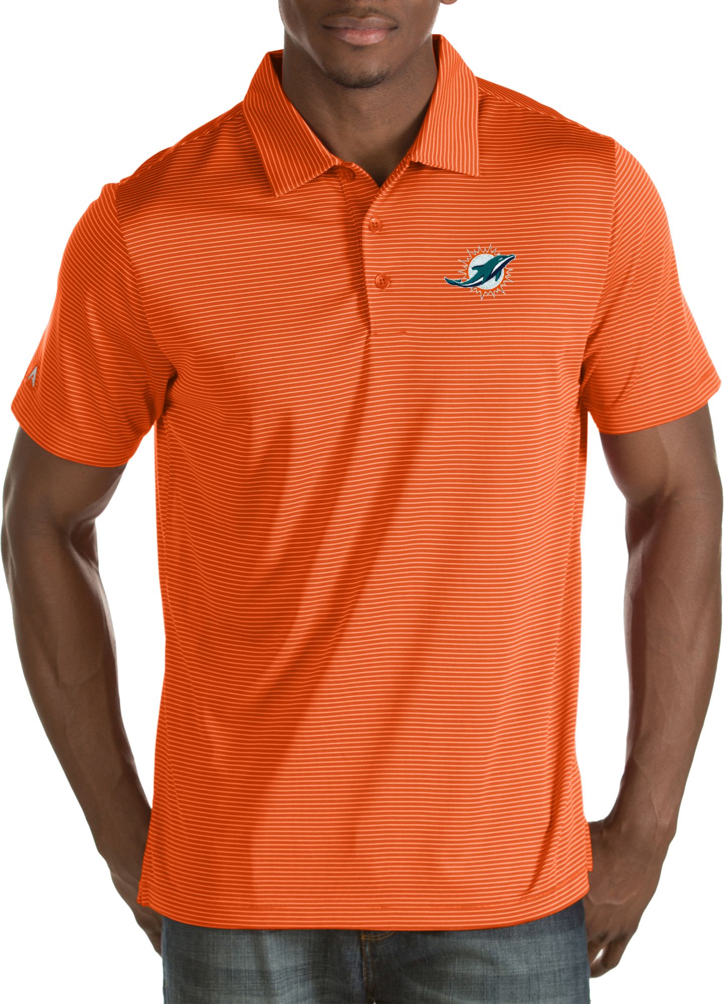 Whether you’re at work or on the golf course, the Antigua® Miami Dolphins Quest Polo puts your team allegiance on display in style and comfort.