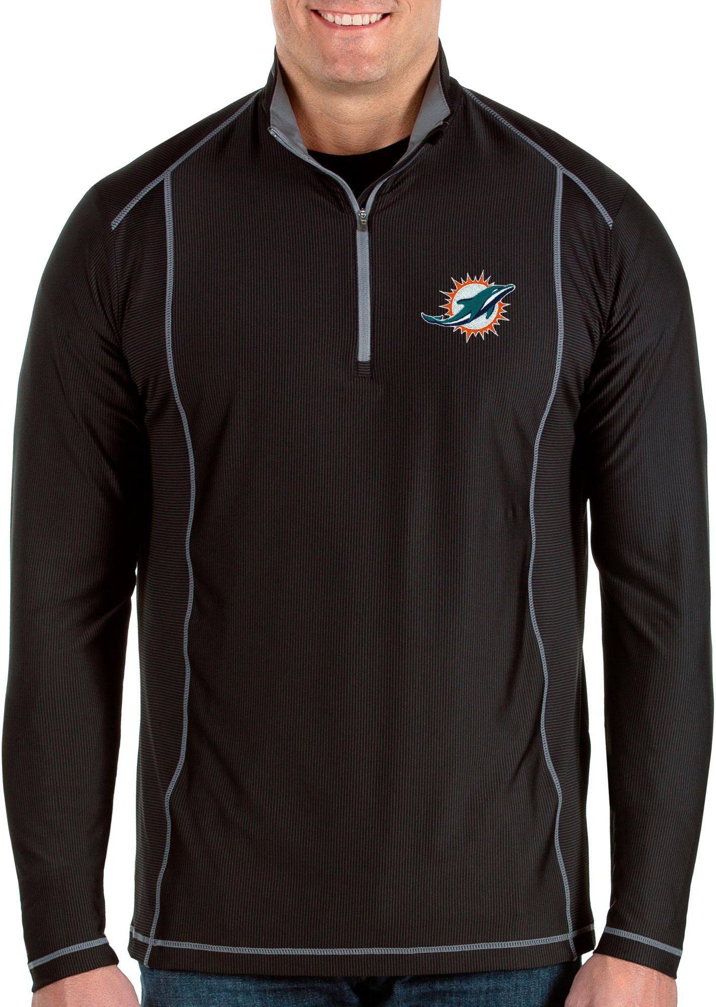 Antigua Men's Miami Dolphins Tempo Black Quarter-Zip Pullover