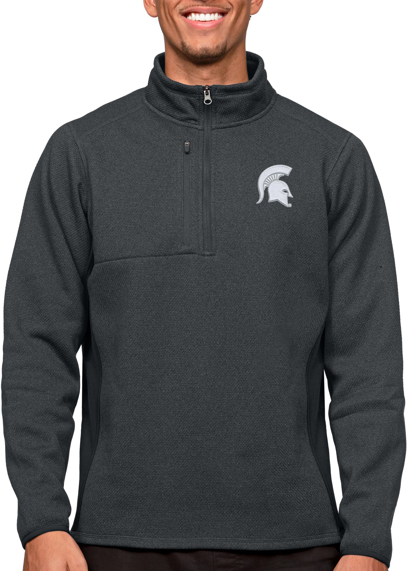 Antigua Men's Michigan State Spartans Charcoal Course 1/4 Zip Jacket