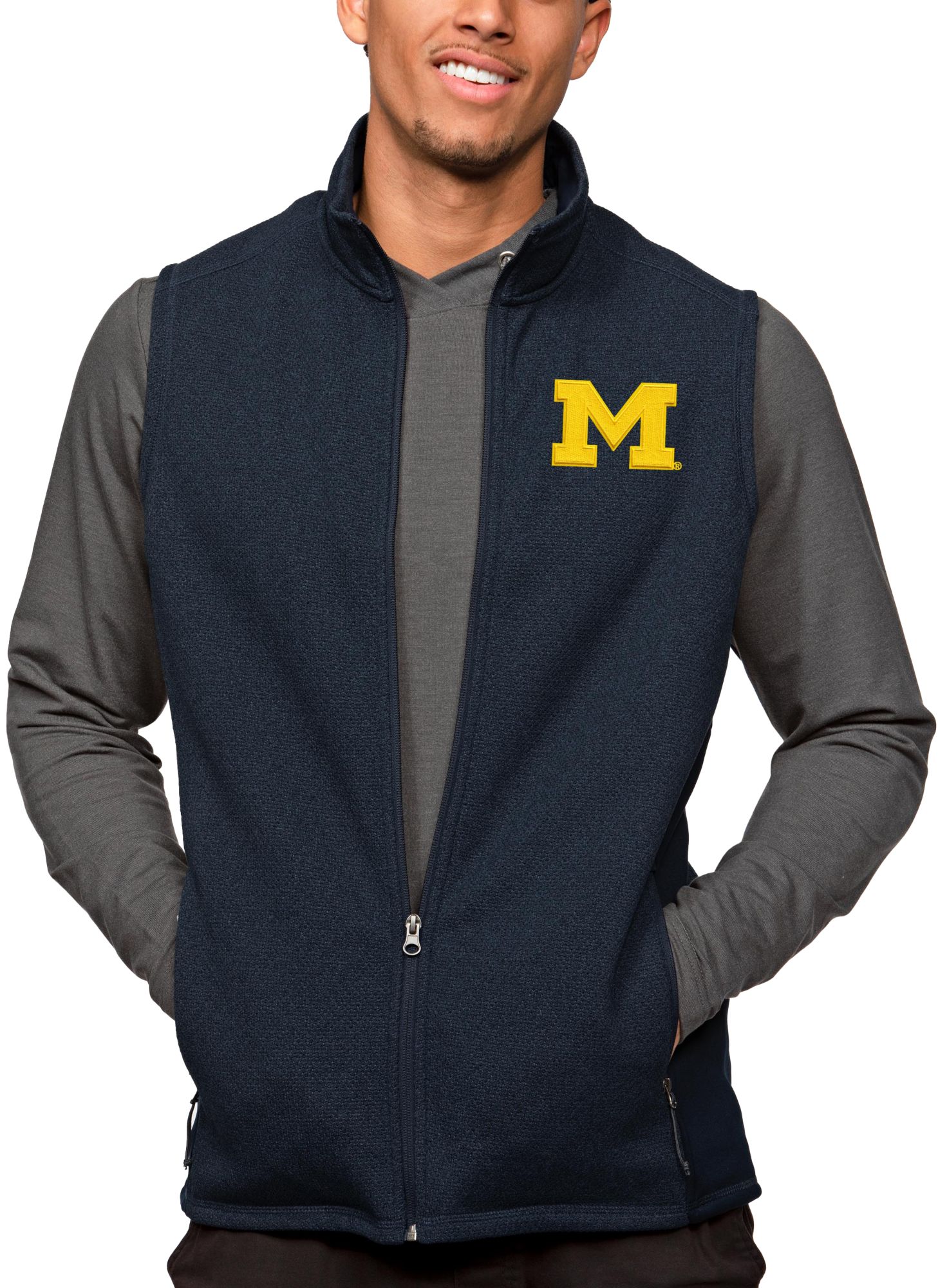 Antigua Men's Michigan Wolverines Navy Heather Course Vest