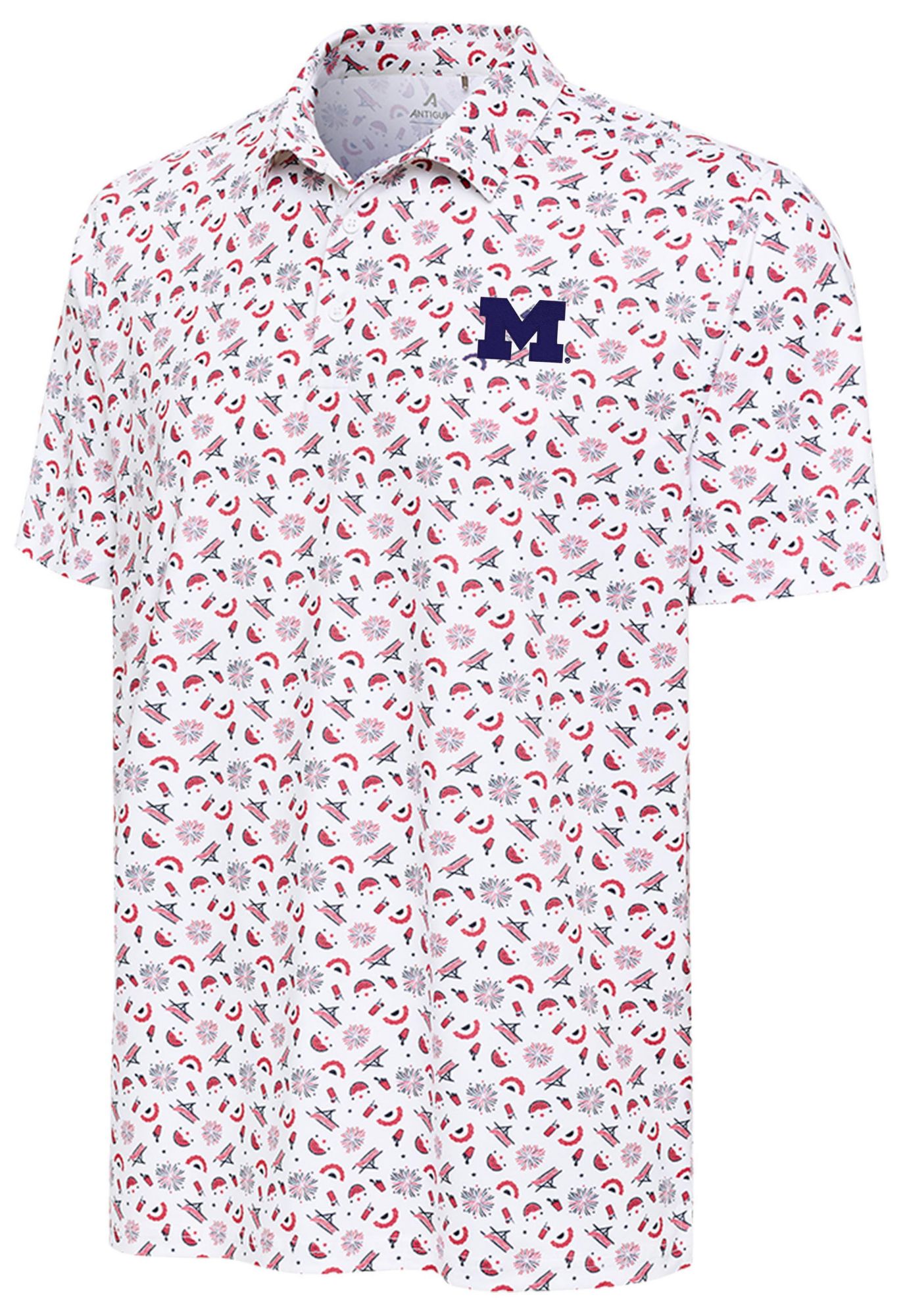Antigua Men's Michigan Wolverines White Patriot Polo
