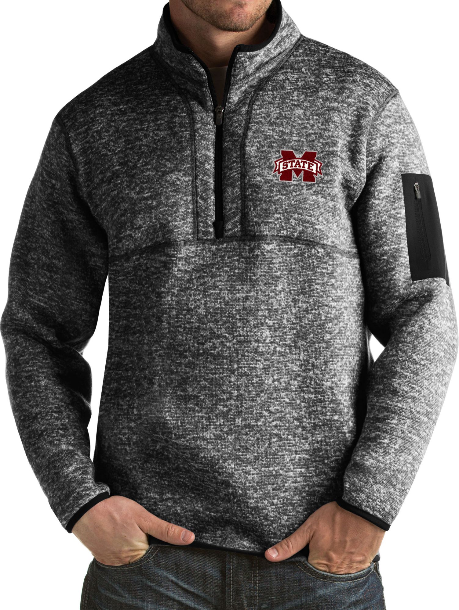 Take on the cold while cheering on the Bulldogs in the Antigua® Men’s Mississippi State Bulldogs Fortune Pullover Jacket.