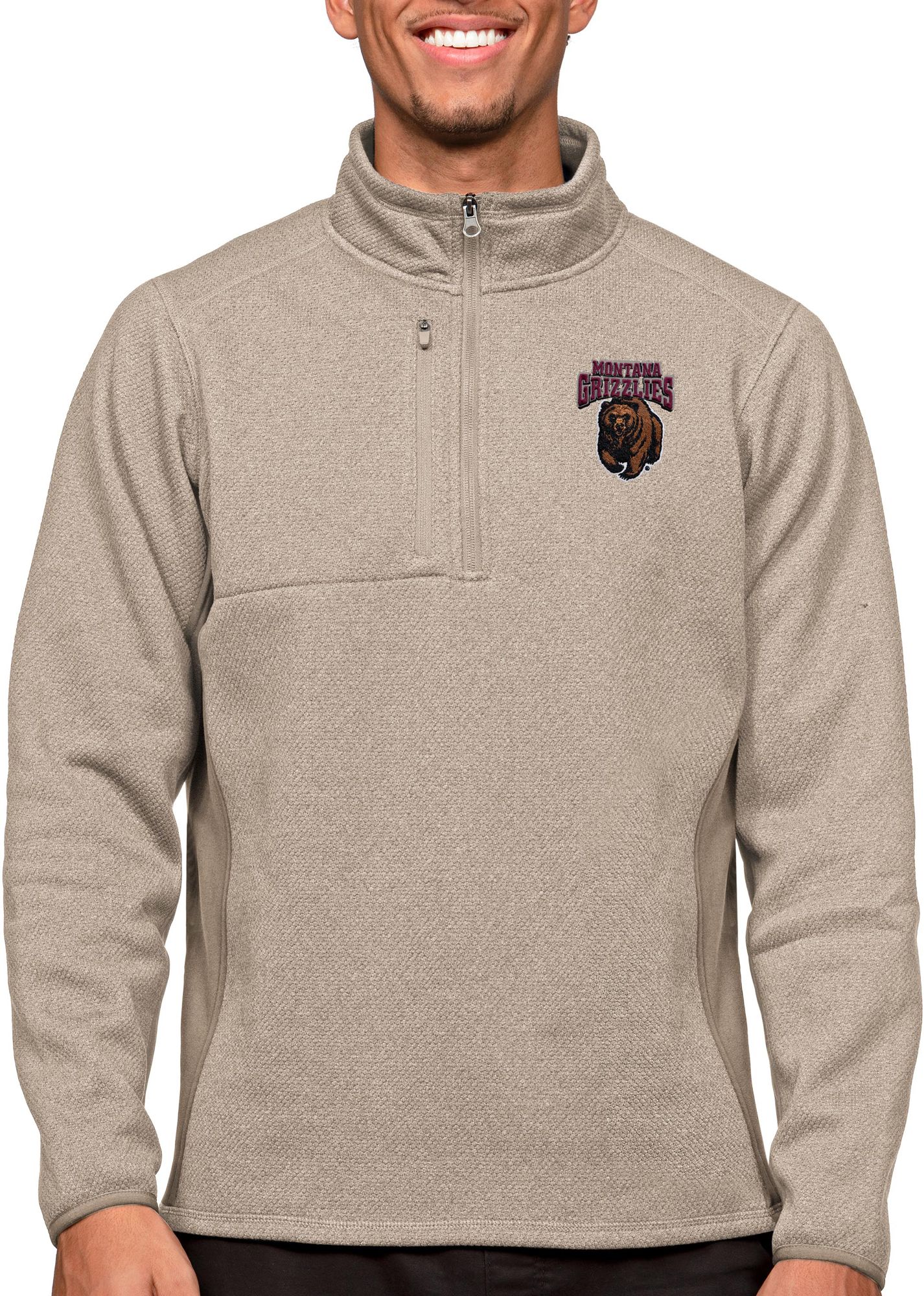 Antigua Men's Montana Grizzlies Oatmeal Course 1/4 Zip Jacket