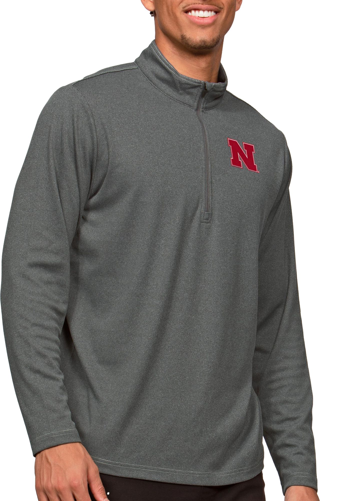 Antigua Men's Nebraska Cornhuskers Charcoal Heather Epic 1/4 Zip Jacket