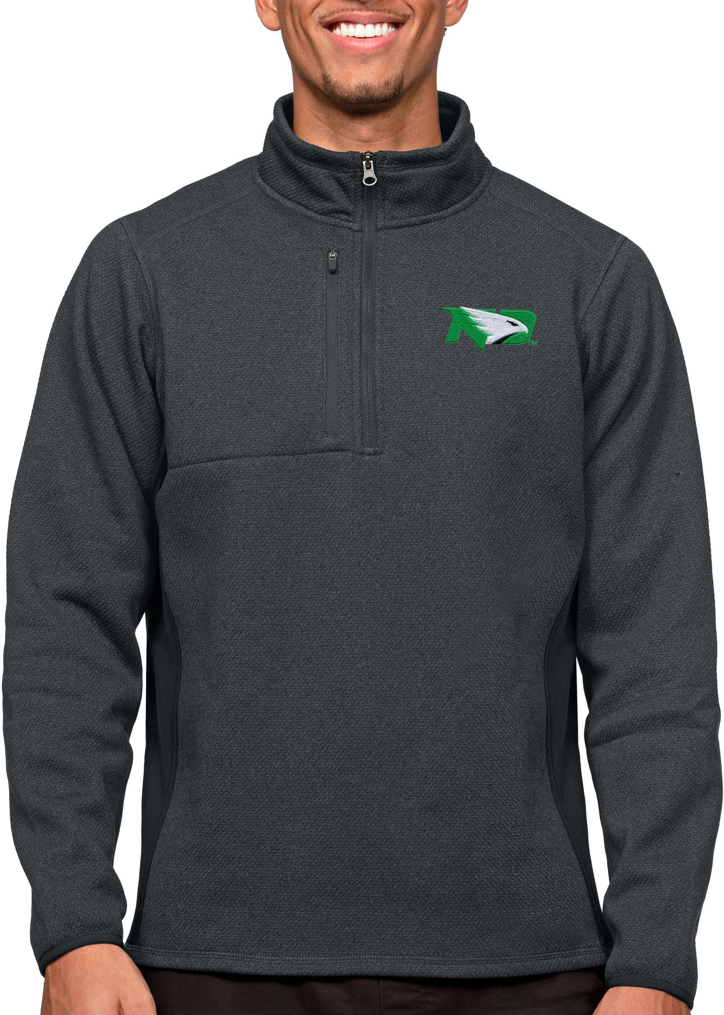 Antigua Men's North Dakota Fighting Hawks Charcoal Course 1/4 Zip Jacket