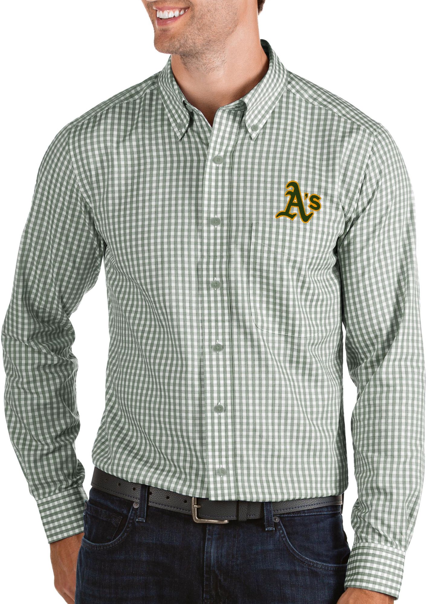 Stay stylish as you celebrate your squad to victory with the Antigua® Oakland Athletics Button-Up Long Sleeve Shirt.