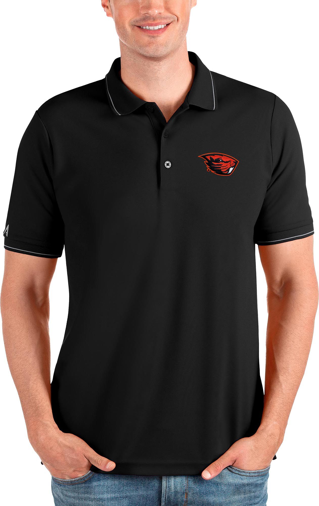 Antigua Men's Oregon State Beavers Black and Silver Affluent Polo