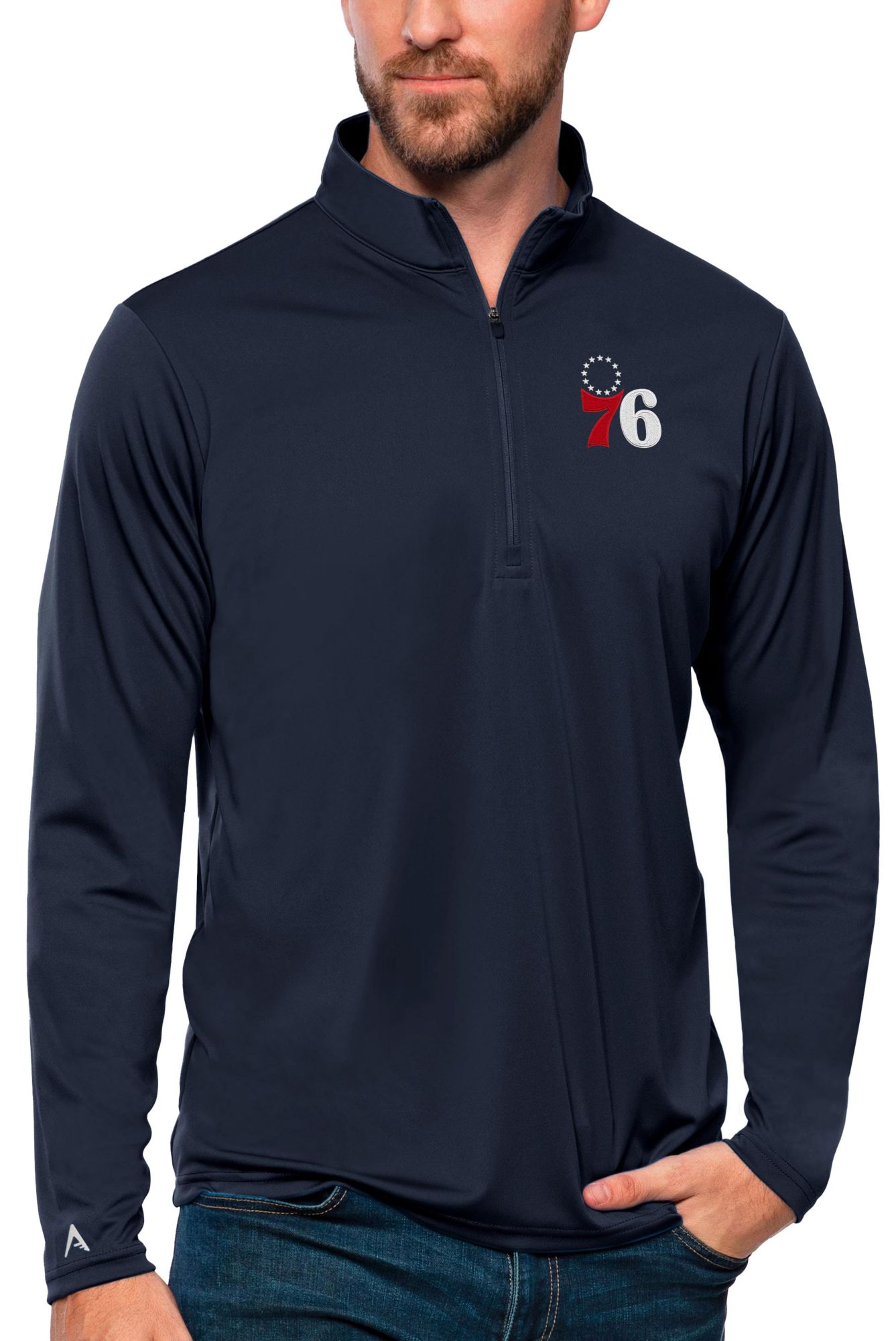 Antigua Men's Philadelphia 76ers Tribute Navy Pullover Sweater