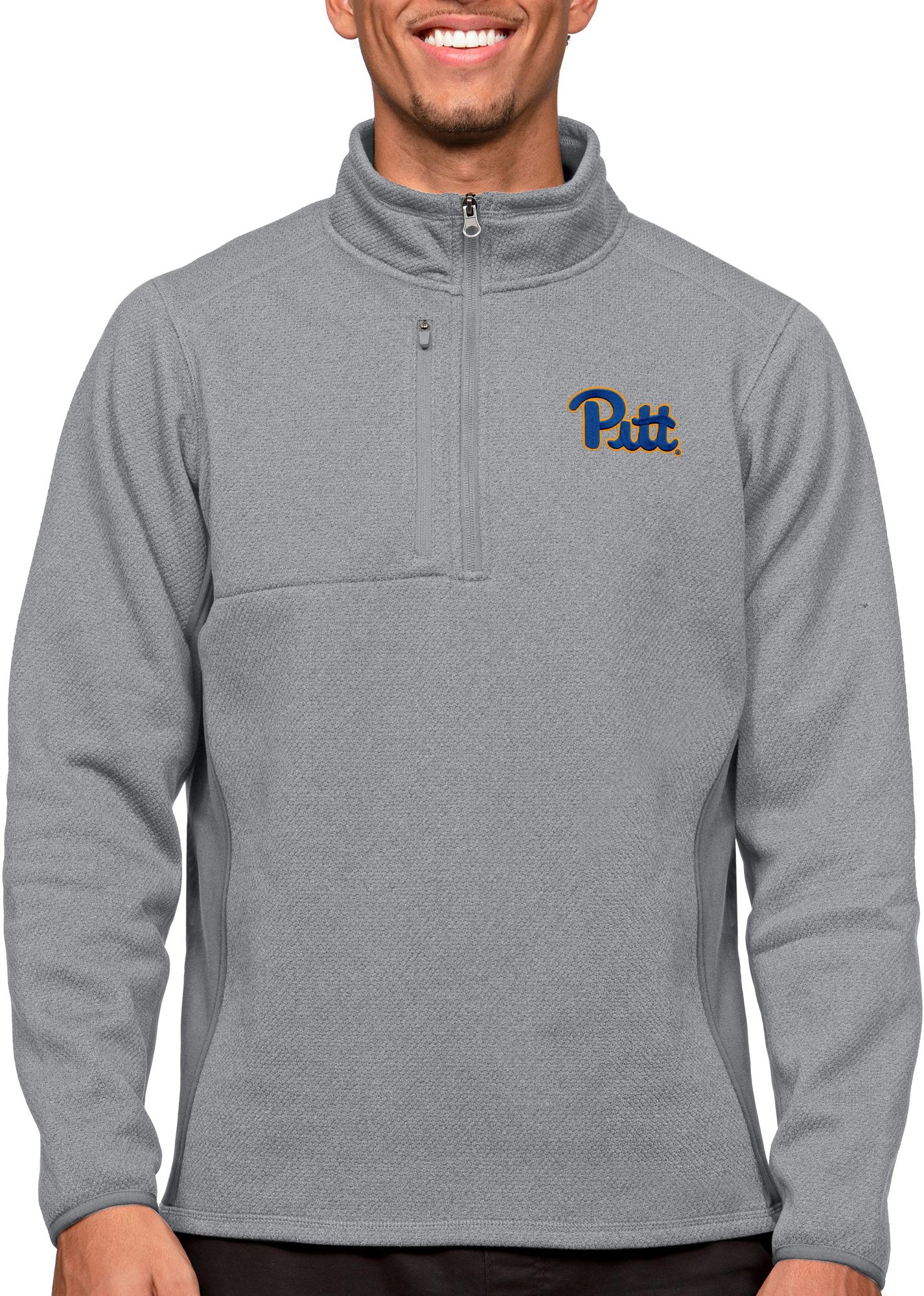 Antigua Men's Pitt Panthers Light Grey Course 1/4 Zip Jacket
