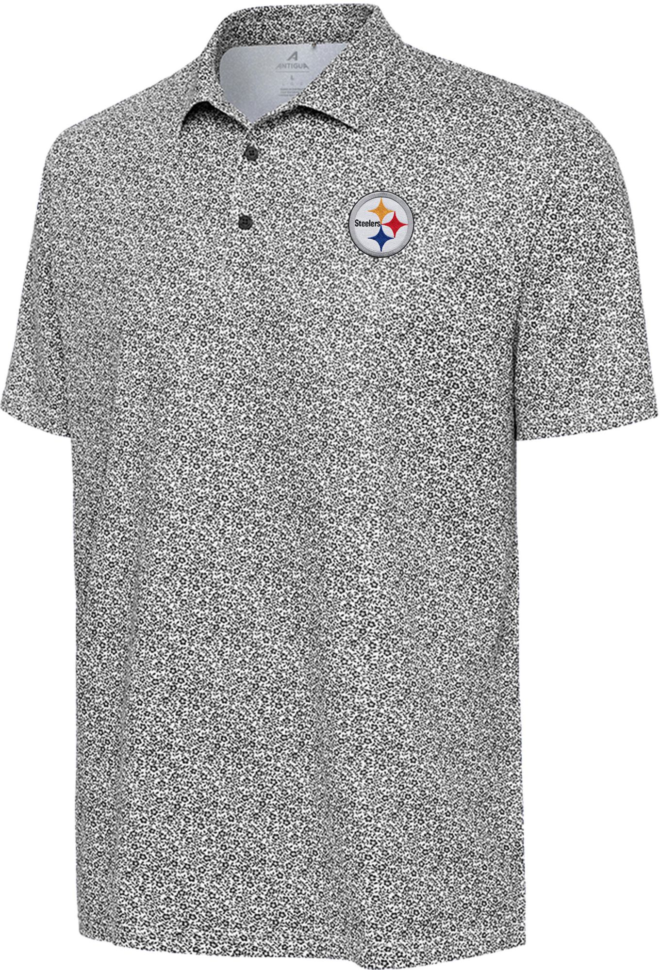 Antigua Men's Pittsburgh Steelers Black Field Ditsy Polo