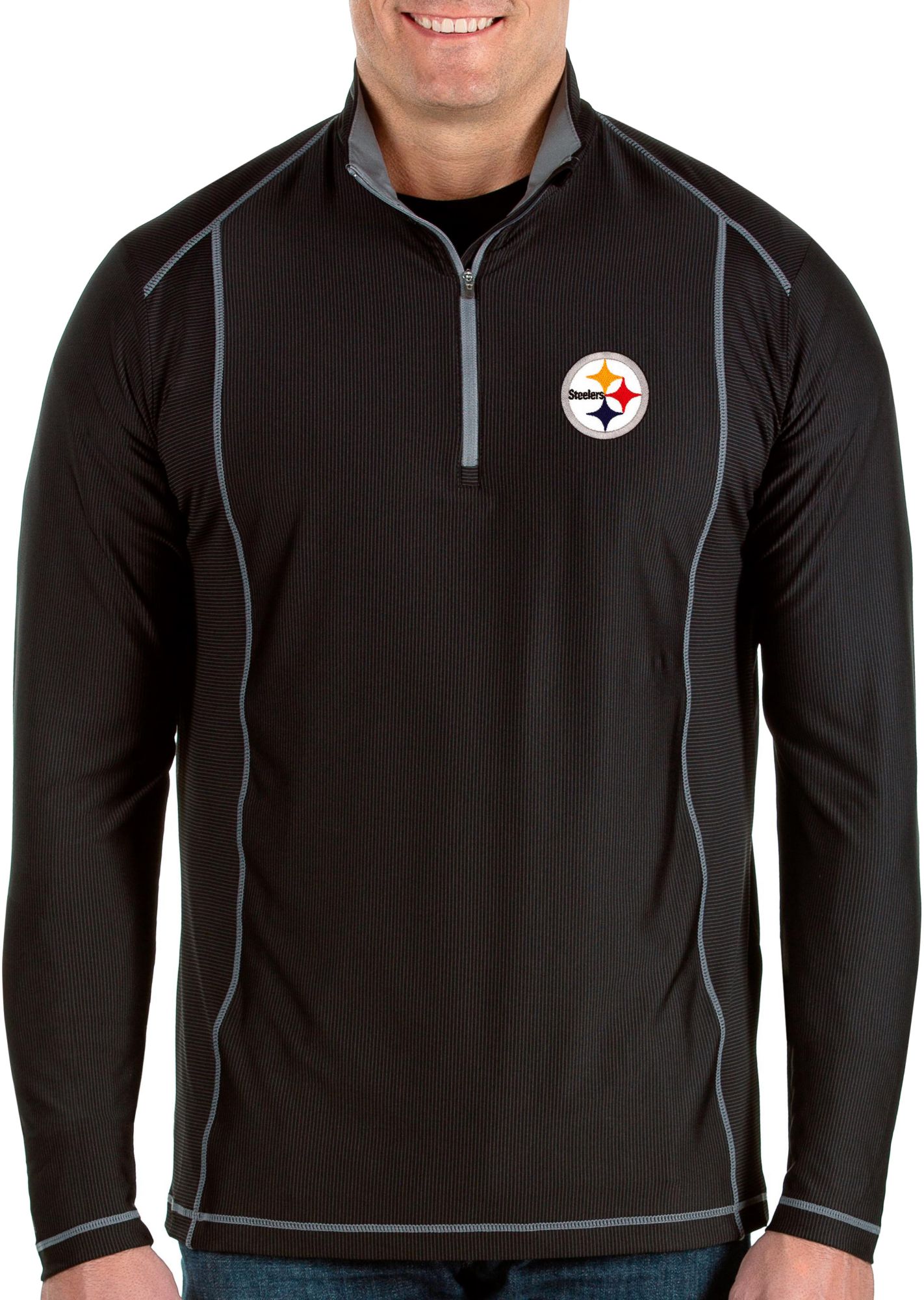Shed tackles and hurdle the opposition on your way to the stadium while sporting the Antigua® Pittsburgh Steelers Tempo Quarter-Zip Pullover.