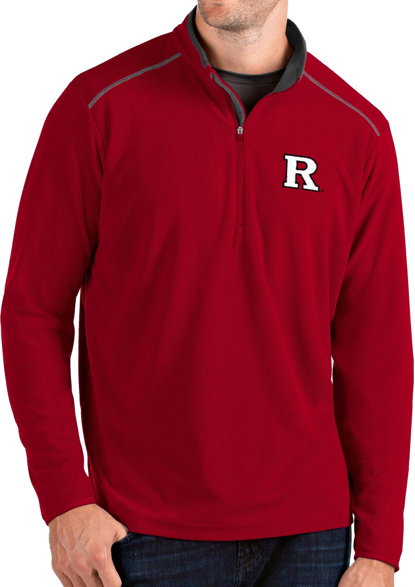 Keep it casual at the next Scarlet Knights tailgate in the Antigua® Men’s Rutgers Scarlet Knights Glacier Quarter-Zip Shirt.