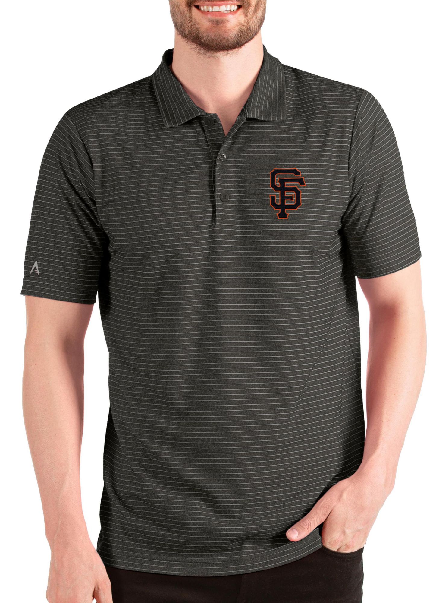 Antigua Men's San Francisco Giants Black Striped Polo