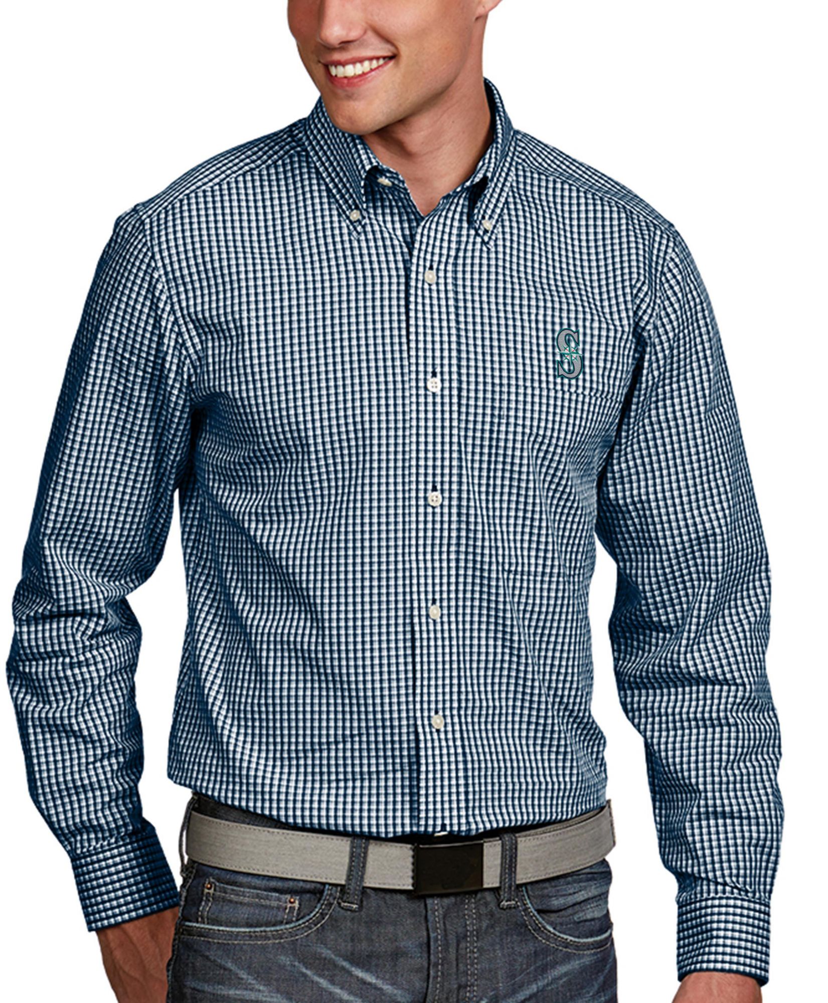 Stay stylish as you celebrate your squad to victory with the Antigua® Seattle Mariners Button-Up Long Sleeve Shirt.