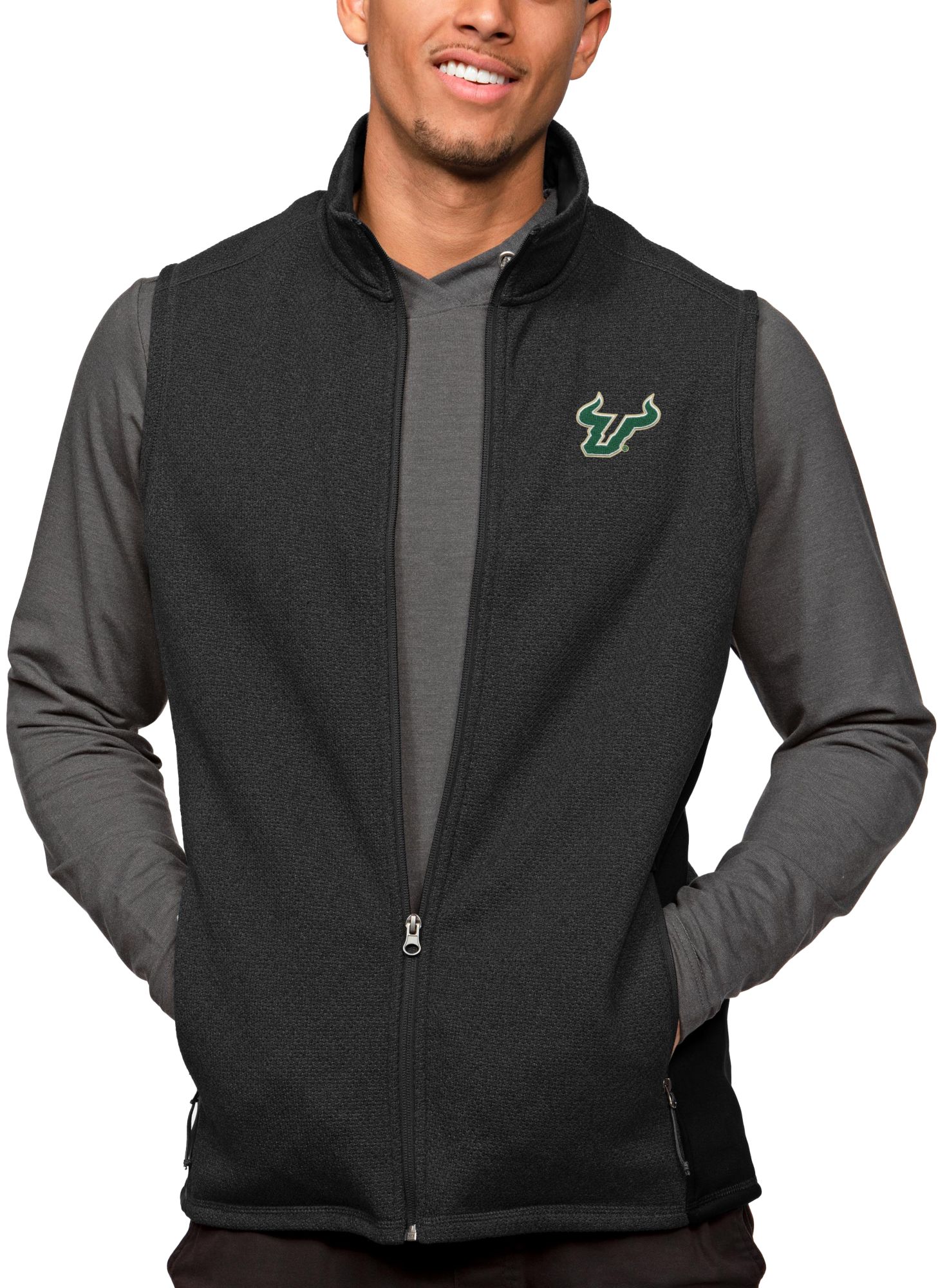 Antigua Men's South Florida Bulls Black Heather Course Vest