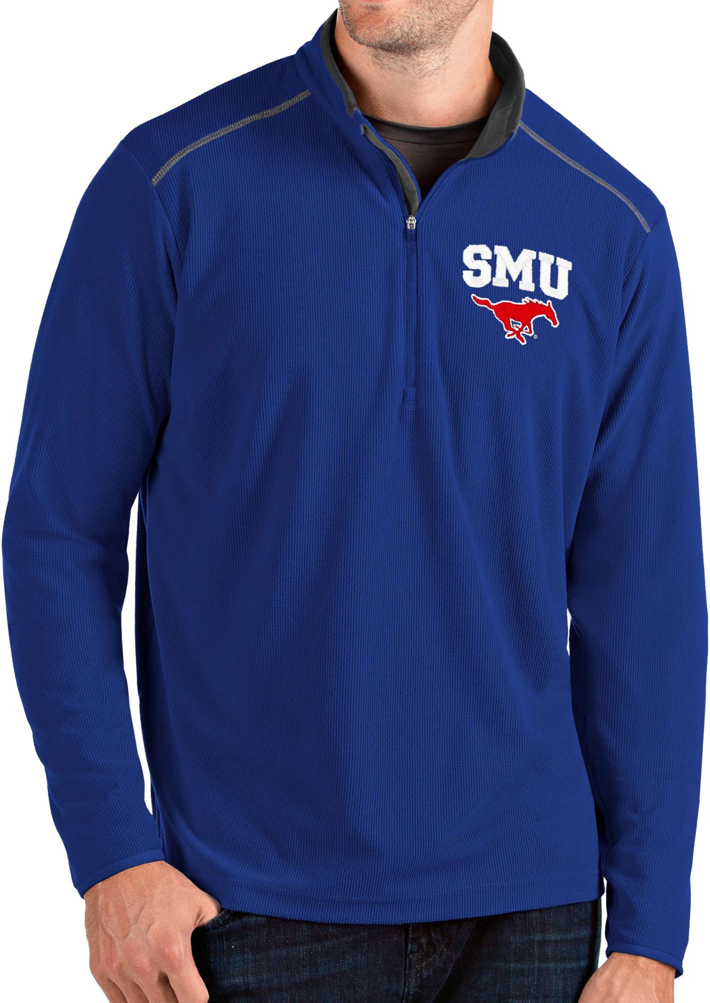 Keep it casual at the next Mustangs tailgate in the Antigua® Men’s Southern Methodist Mustangs Glacier Quarter-Zip Shirt.