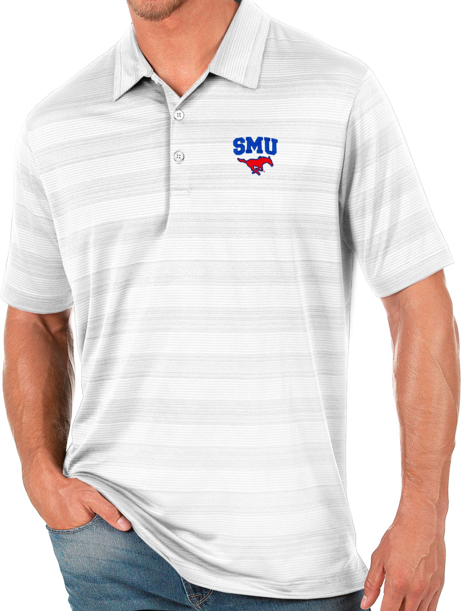 Antigua Men's Southern Methodist Mustangs White Compass Polo