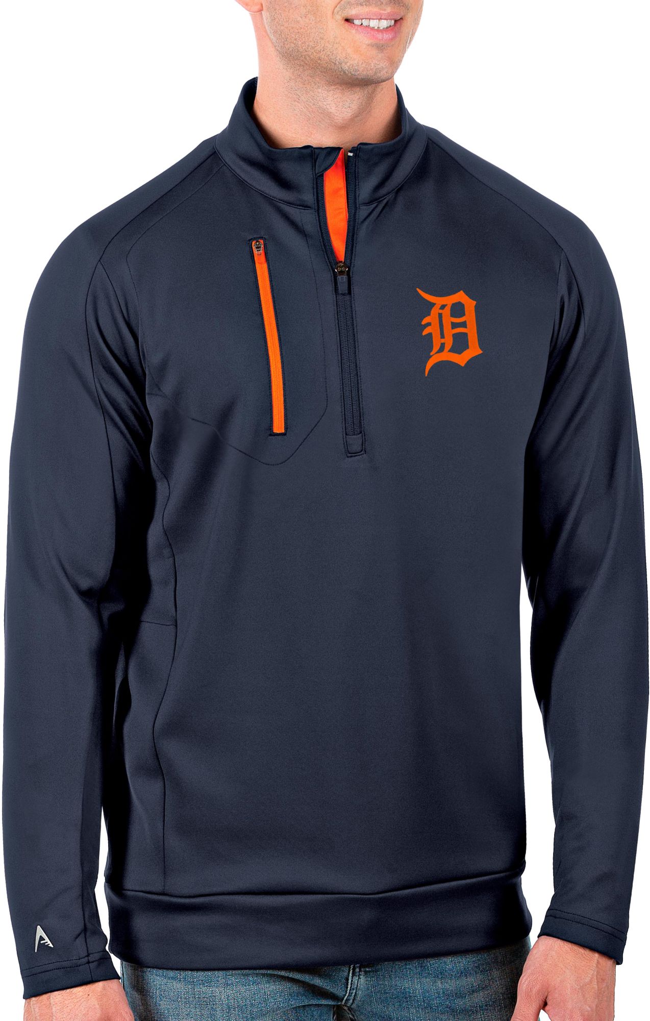 Antigua Men's Tall Detroit Tigers Generation Navy Half-Zip Pullover