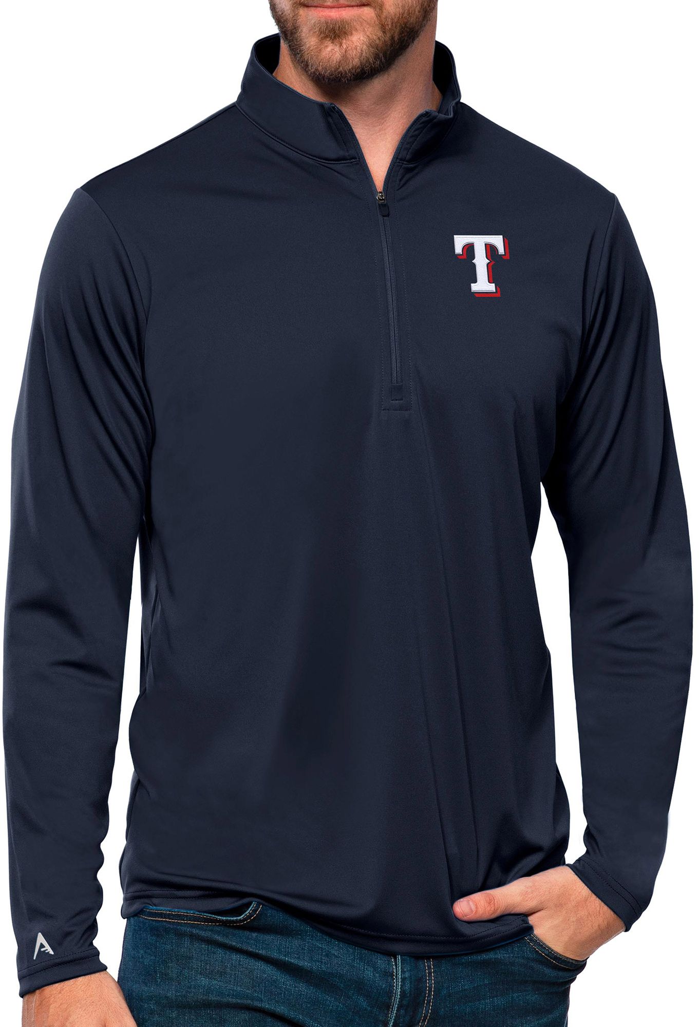 Antigua Men's Texas Rangers Navy Tribute 1/4 Zip Pullover