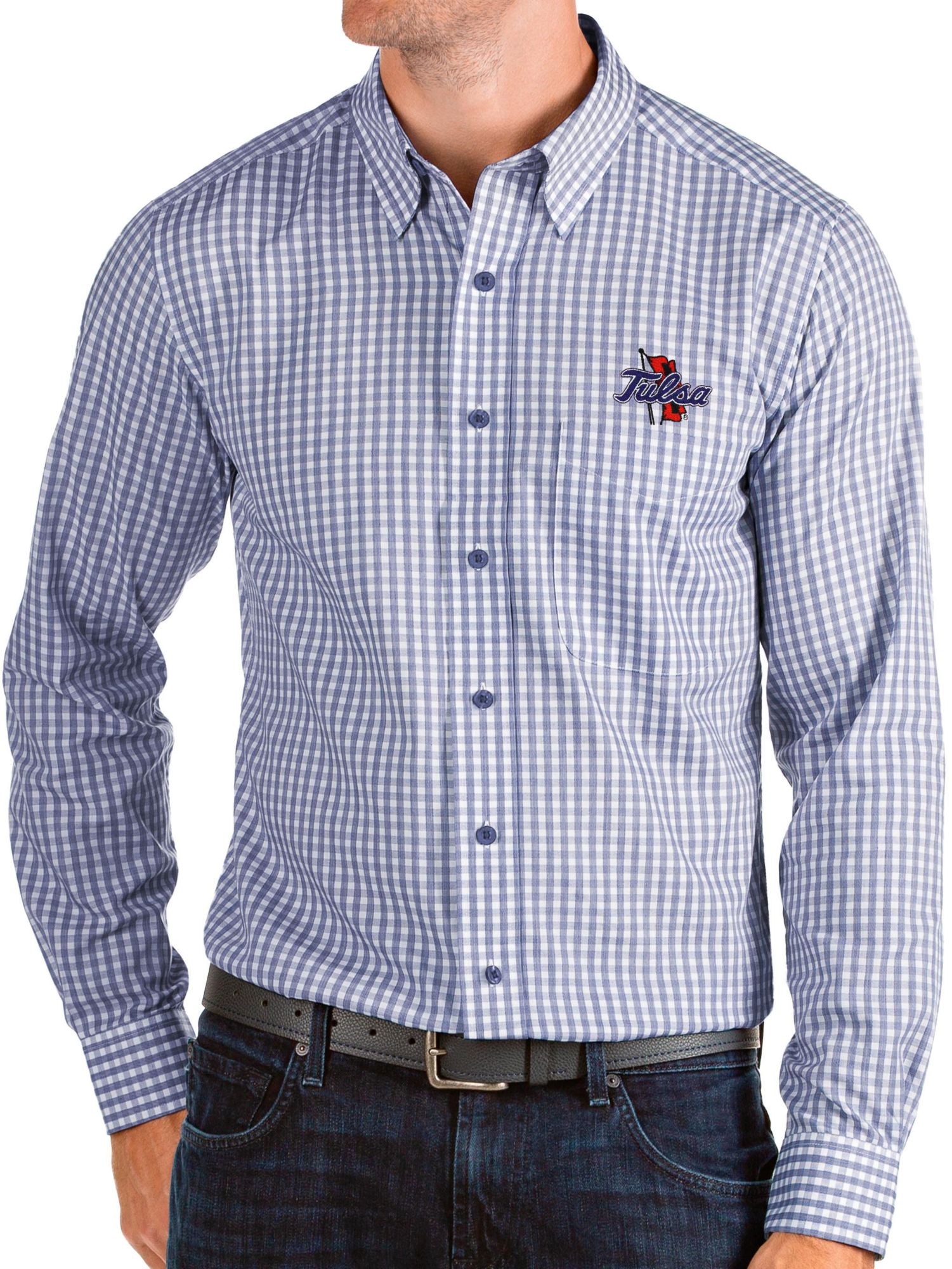 Antigua Men's Tulsa Golden Hurricane Blue Structure Button Down Long Sleeve Shirt
