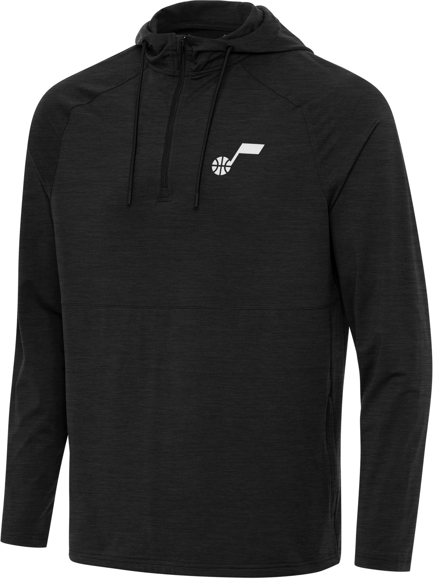 Antigua Men's Utah Jazz Black Spikes Quarter-Zip Hooded Pullover