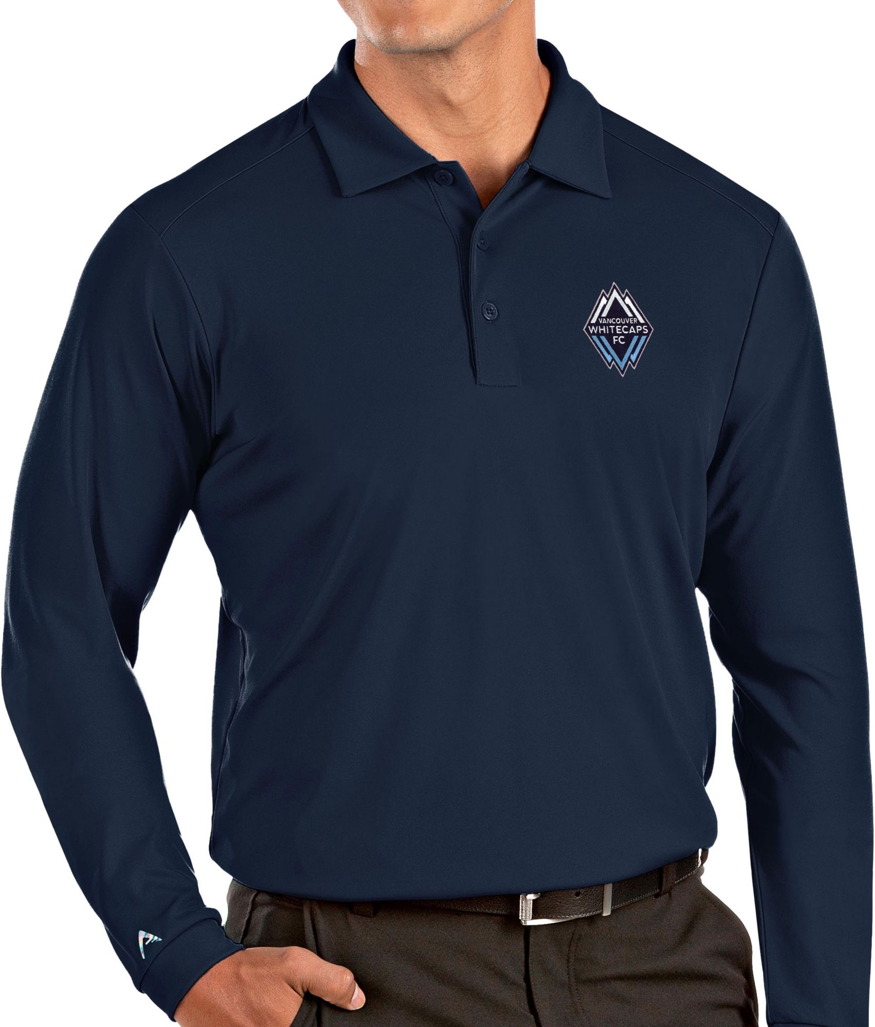Antigua Men's Vancouver Whitecaps Navy Tribute Long Sleeve Performance Polo