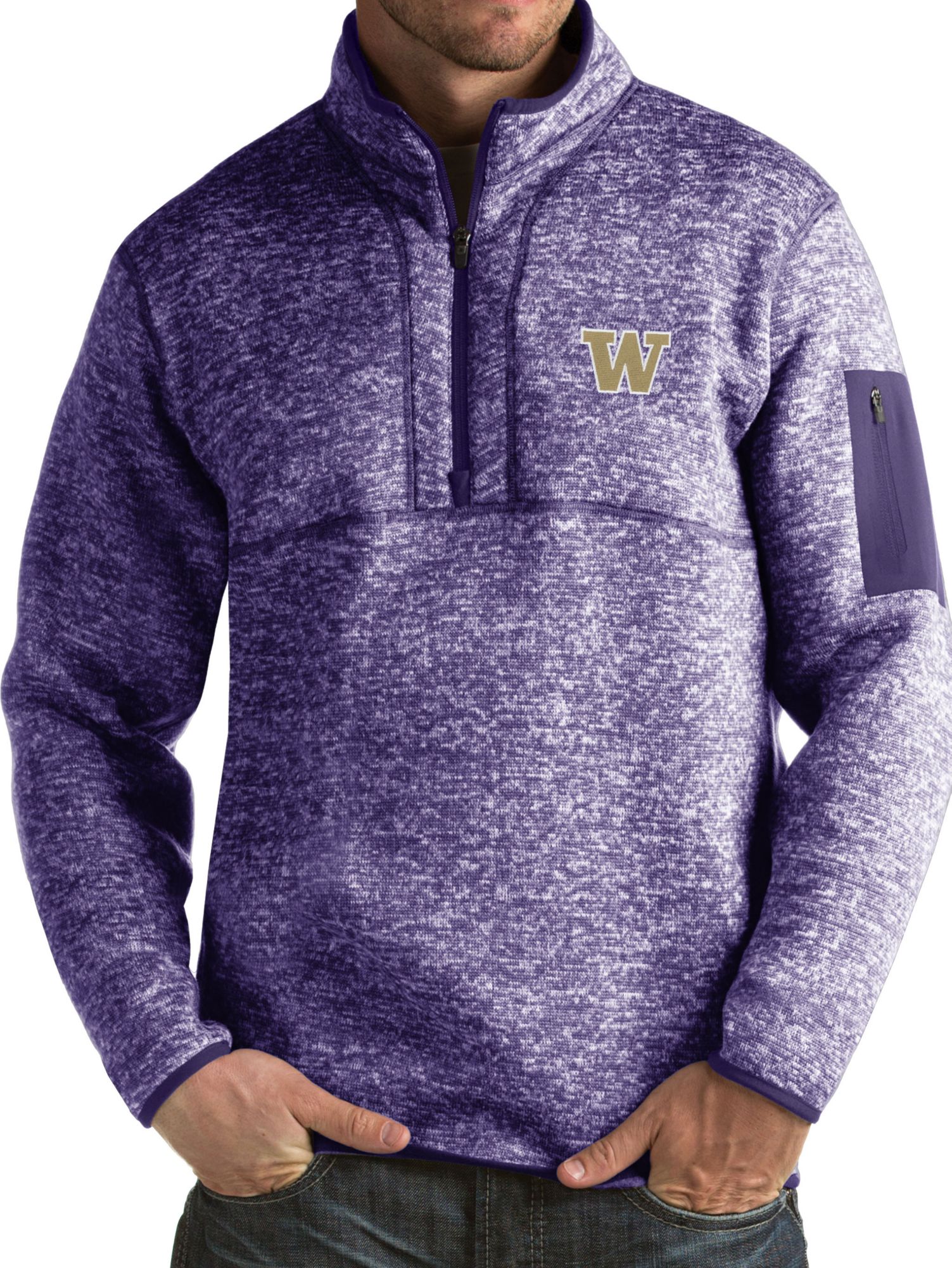 Take on the cold while cheering on the Huskies in the Antigua Men's Washington Huskies Fortune Pullover Jacket.