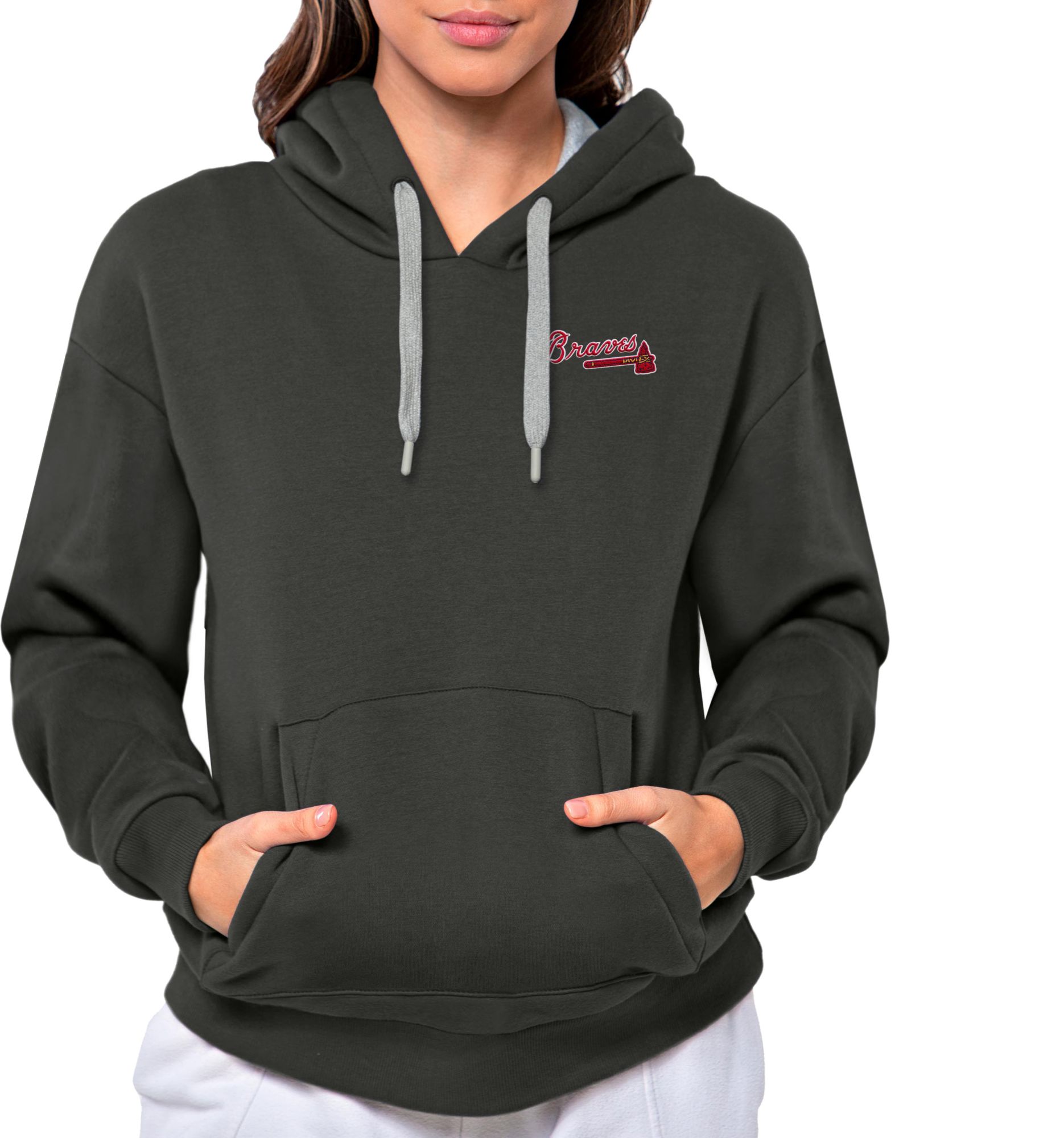 Antigua Women's Atlanta Braves Charcoal Victory Hooded Pullover