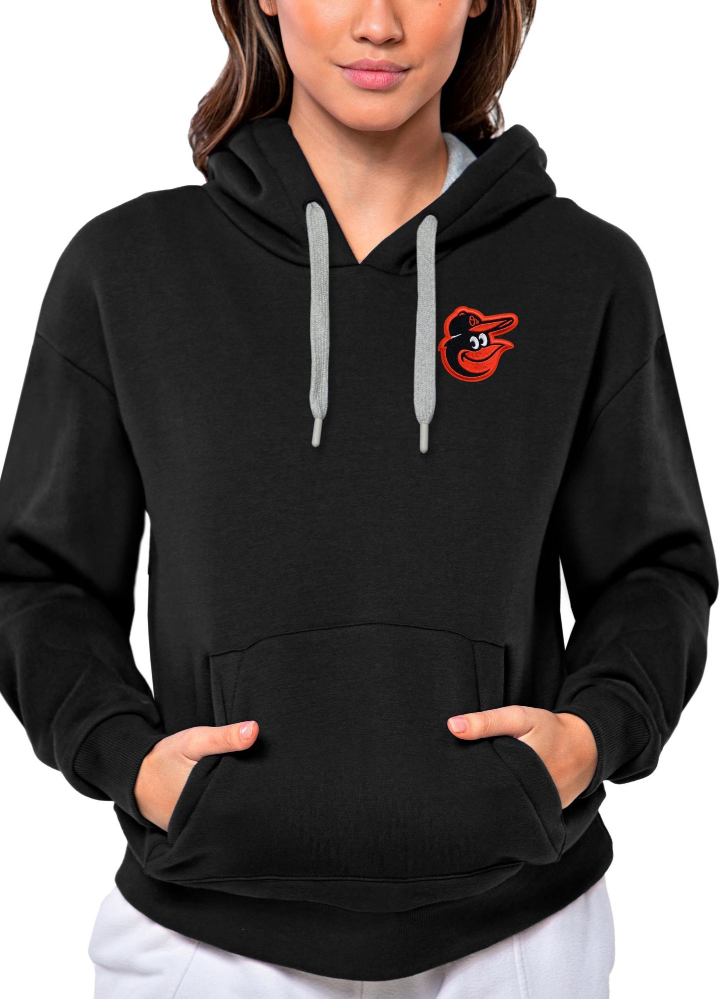 Antigua Women's Baltimore Orioles Black Victory Hooded Pullover