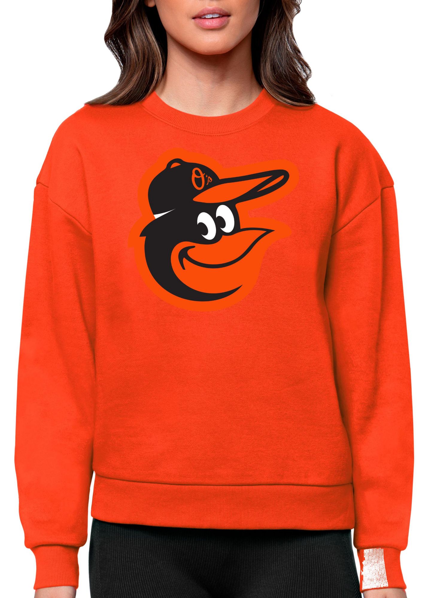 Antigua Women's Baltimore Orioles Orange Victory Crew Pullover