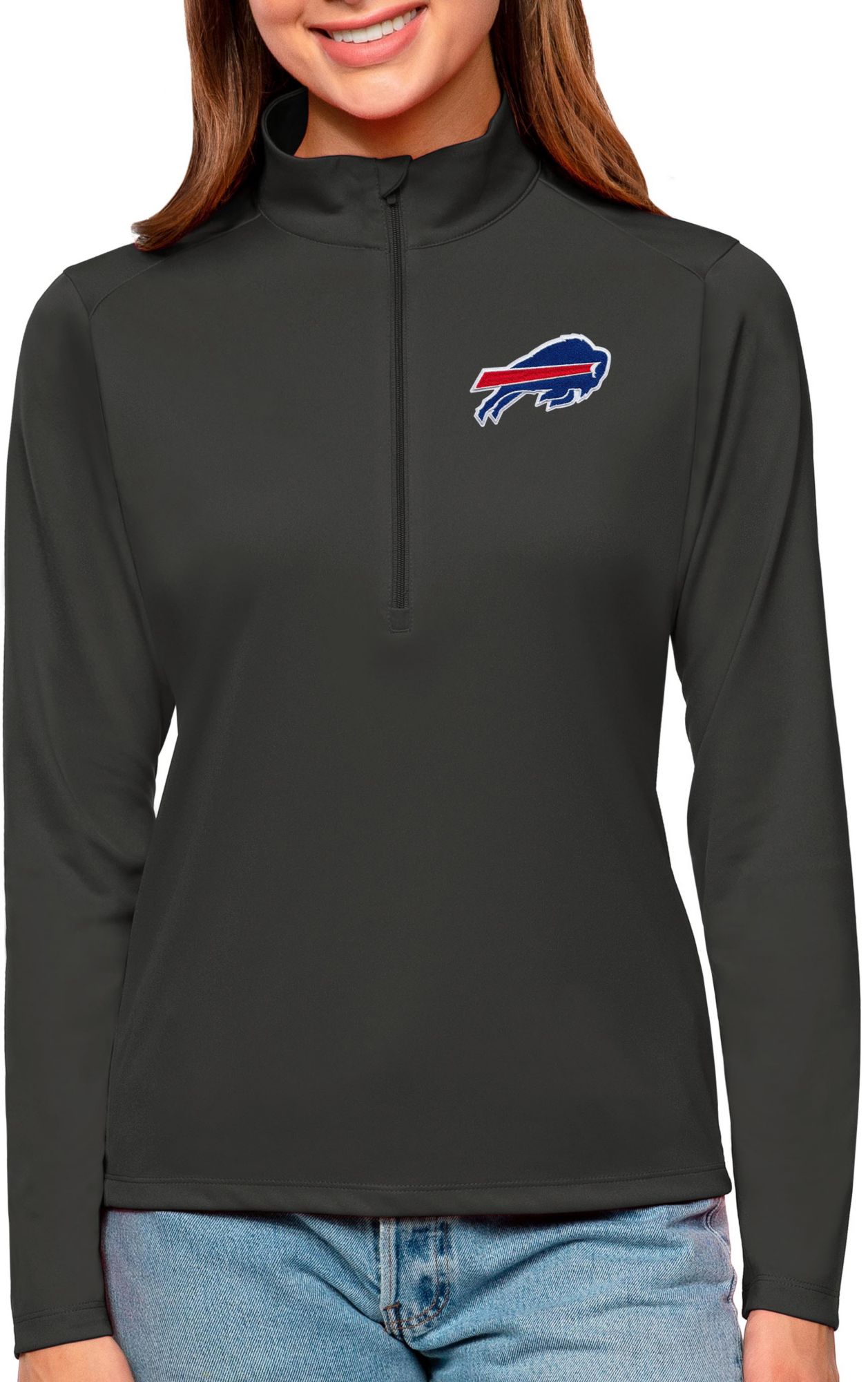 Antigua Women's Buffalo Bills Tribute Grey 1/4-Zip Pullover