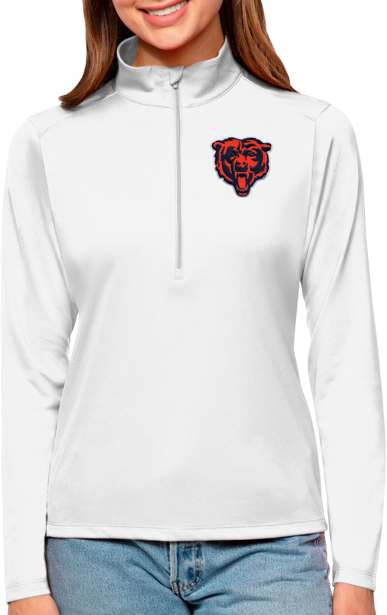 Antigua Women's Chicago Bears Tribute White 1/4-Zip Pullover
